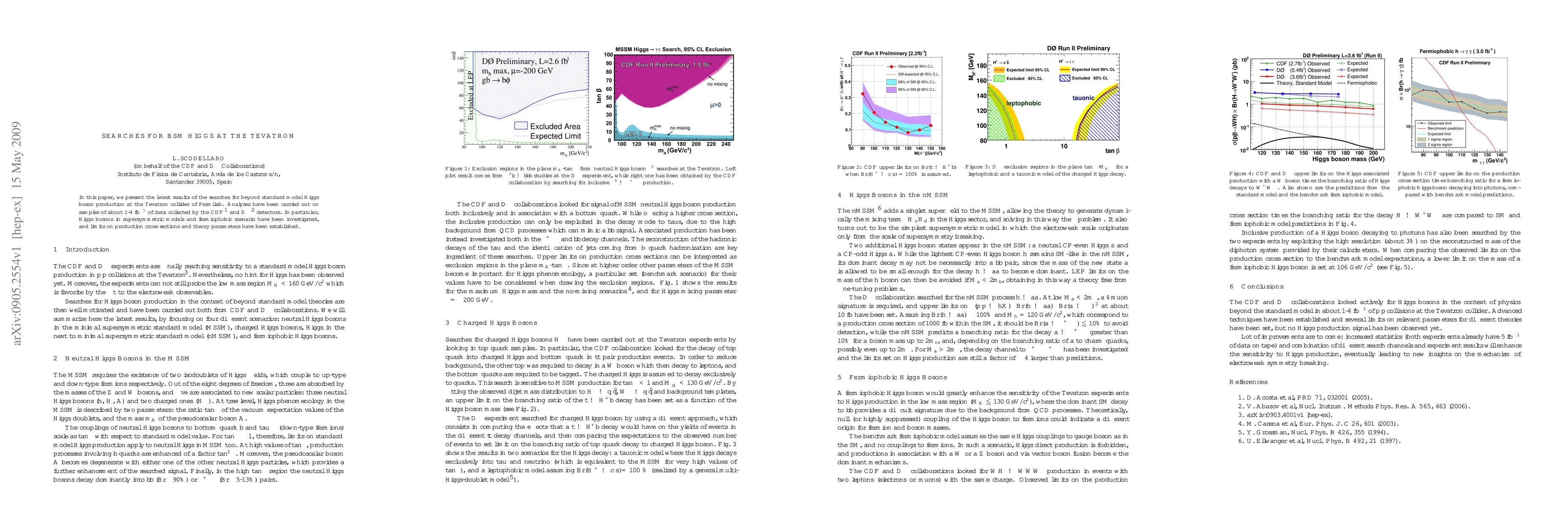 This paper reports the latest findings from searches for beyond the Standard Model Higgs bosons at the Tevatron collider, analyzing data from CDF and D0 detectors. It establishes limits on production cross sections and parameters for supersymmetric and fermiophobic Higgs models.