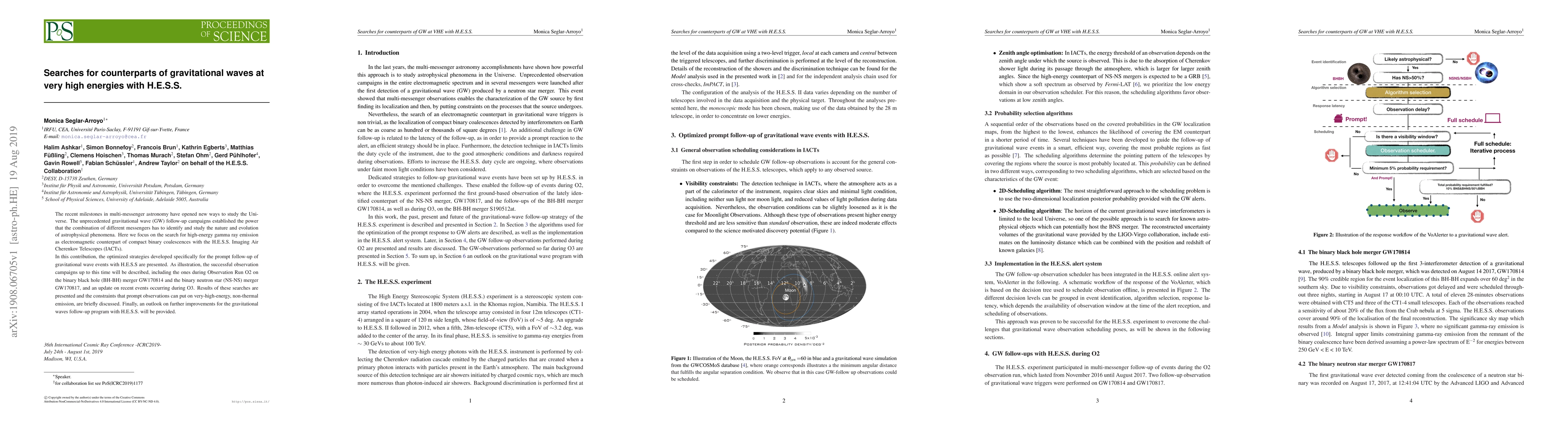 The recent milestones in multi-messenger astronomy have opened new ways to study the Unverse. The unprecedented gravitational wave (GW) follow-up campaigns established the power that the combination of different messengers has to identify and study the nature and evolution of astrophysical phenomena. Here we focus on the search for high-energy gamma ray emission as electromagnetic counterpart of compact binary coalescences with the H.E.S.S. Imaging Air Cherenkov Telescopes (IACTs). In this contribution, the optimized strategies developed specifically for the prompt follow-up of gravitational wave events with H.E.S.S are presented. As illustration, the successful observation campaigns up to this time will be described, including the ones during Observation Run O2 on the binary black hole (BH-BH) merger GW170814 and the binary neutron star (NS-NS) merger GW170817, and an update on recent events occurring during O3. Results of these searches are presented and the constraints that prompt observations can put on very-high-energy, non-thermal emission, are briefly discussed. Finally, an outlook on further improvements for the gravitational waves follow-up program with H.E.S.S. will be provided.