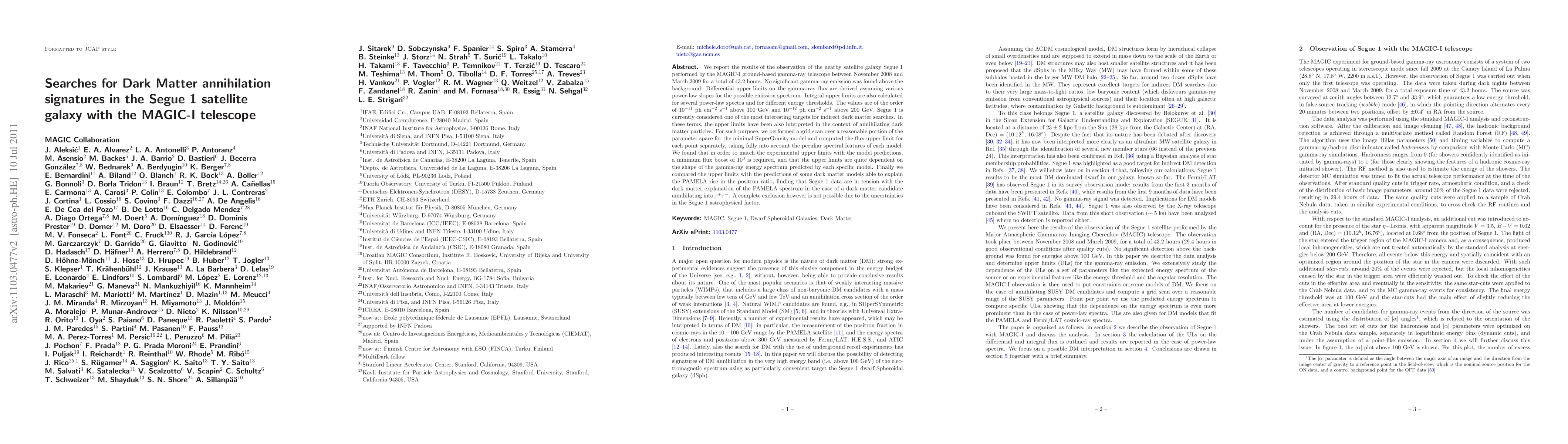 The MAGIC-I telescope observed the Segue 1 satellite galaxy for 43.2 hours, finding no significant gamma-ray emission. The derived upper limits suggest a minimum flux boost of 10^3 is needed to match model predictions, indicating Segue 1 data conflict with certain dark matter models explaining the PAMELA positron anomaly.