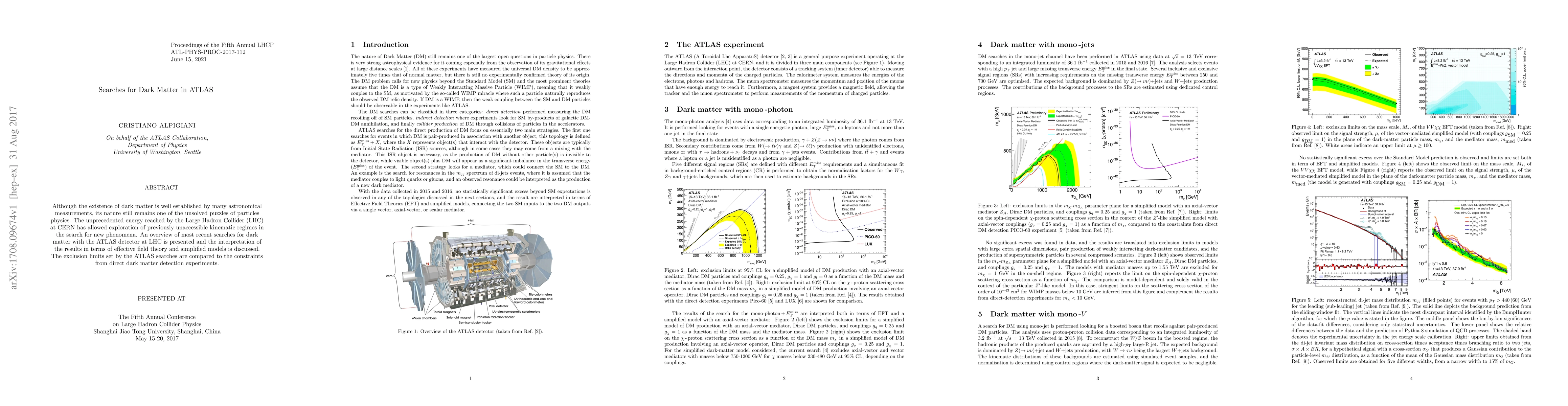This paper reviews recent ATLAS searches for dark matter at the LHC, exploring new kinematic regimes to uncover potential dark matter phenomena. The results are interpreted using effective field theory and simplified models, and exclusion limits are compared to constraints from direct detection experiments.