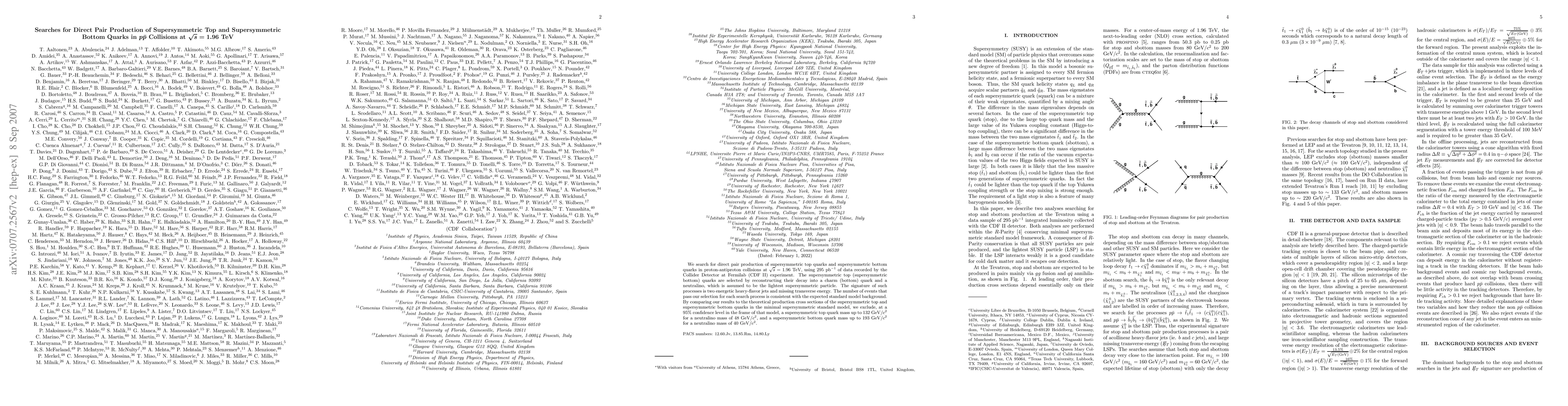 This study searched for supersymmetric top and bottom quarks in proton-antiproton collisions at 1.96 TeV, ruling out masses up to 132 GeV and 193 GeV for certain neutralino masses.