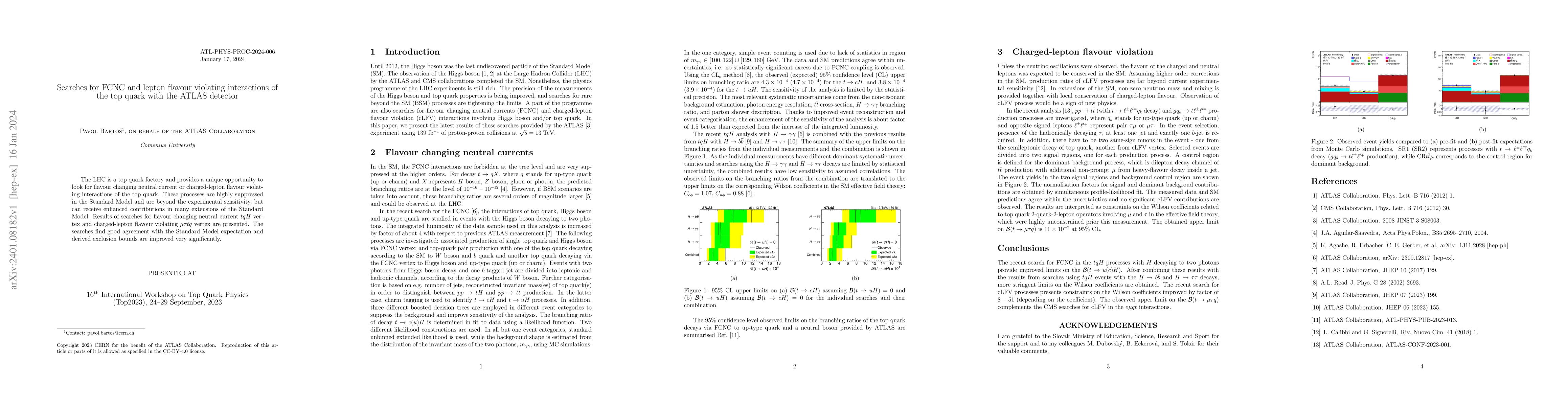 The ATLAS detector at the LHC searched for rare flavour changing neutral current and charged-lepton flavour violating interactions of the top quark, finding no deviations from the Standard Model and significantly improving exclusion bounds. These processes are theoretically suppressed but could be enhanced in models beyond the Standard Model.