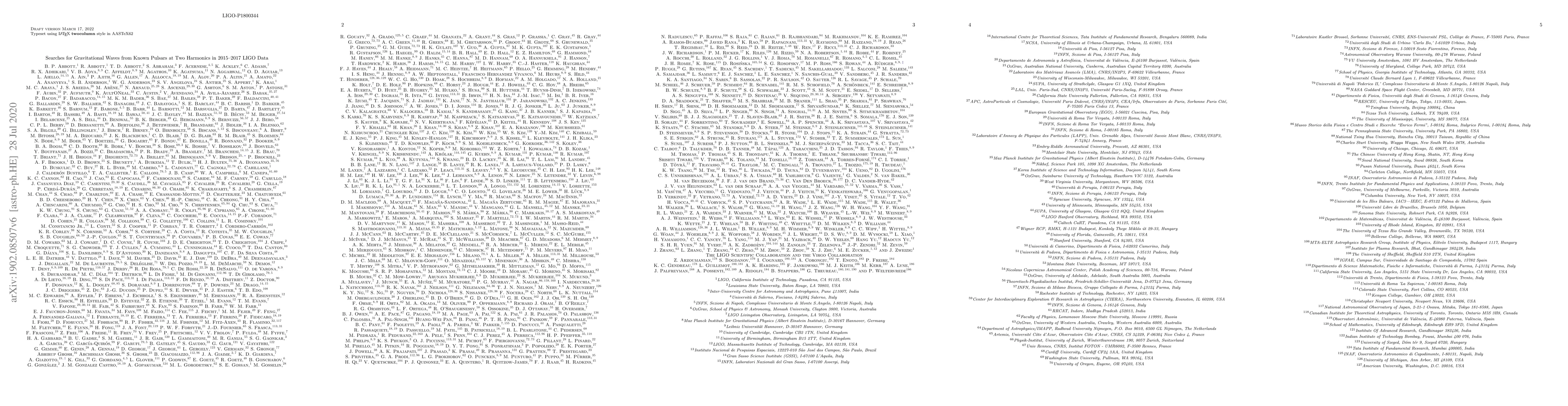 A search for gravitational waves from known pulsars found no evidence of emission at two harmonics in LIGO data between 2015-2017, setting new limits on gravitational wave amplitude and spin-down luminosity.