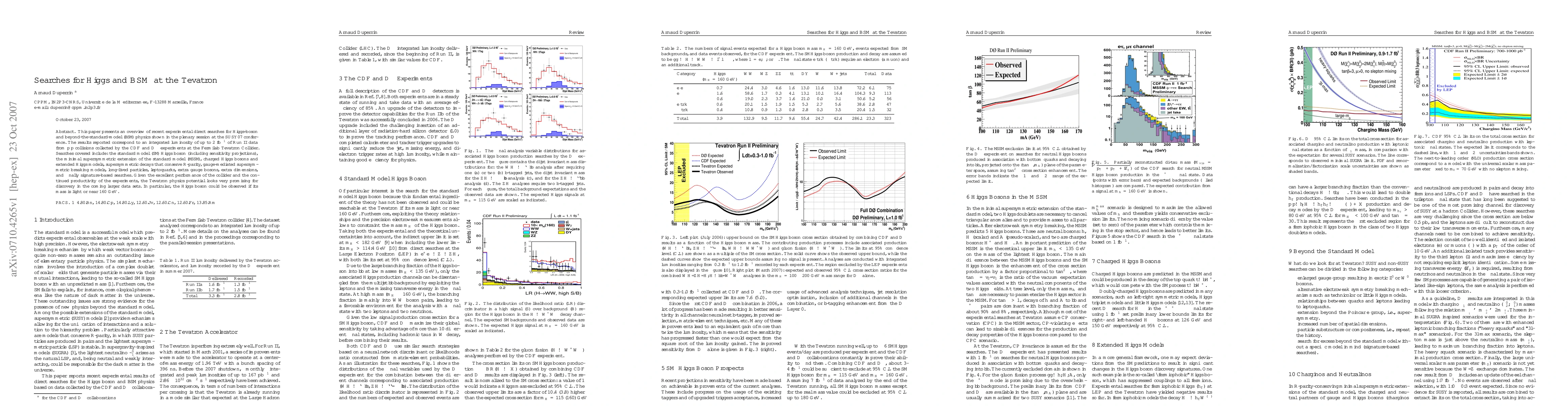 This paper presents an overview of recent experimental direct searches for Higgs-boson and beyond-the-standard-model (BSM) physics shown in the plenary session at the SUSY07 conference. The results reported correspond to an integrated luminosity of up to 2 fb-1 of Run II data from $p\bar{p}$ collisions collected by the CDF and D0 experiments at the Fermilab Tevatron Collider. Searches covered include: the standard model (SM) Higgs boson (including sensitivity projections), the minimal supersymmetric extension of the standard model (MSSM), charged Higgs bosons and extended Higgs models, supersymmetric decays that conserve R-parity, gauge-mediated supersymmetric breaking models, long-lived particles, leptoquarks, extra gauge bosons, extra dimensions, and finally signature-based searches. Given the excellent performance of the collider and the continued productivity of the experiments, the Tevatron physics potential looks very promising for discovery in the coming larger data sets. In particular, the Higgs boson could be observed if its mass is light or near 160 GeV.
