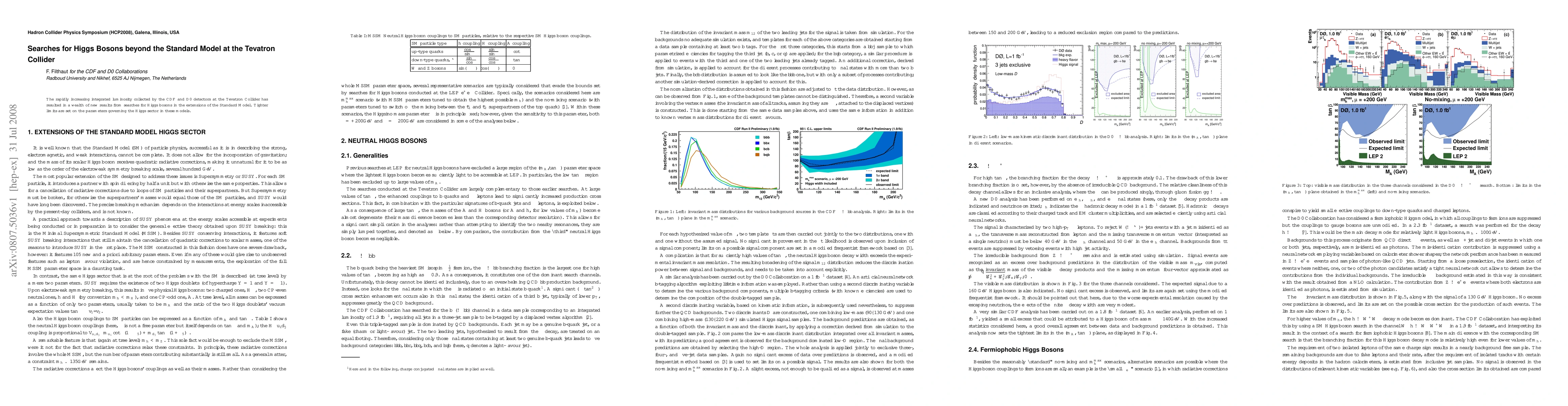Summary: This paper reports on the results from the CDF and D0 detectors at the Tevatron Collider, detailing new searches for Higgs bosons beyond the Standard Model. The increased luminosity has led to tighter constraints on parameters governing the Higgs sector in these extended models.