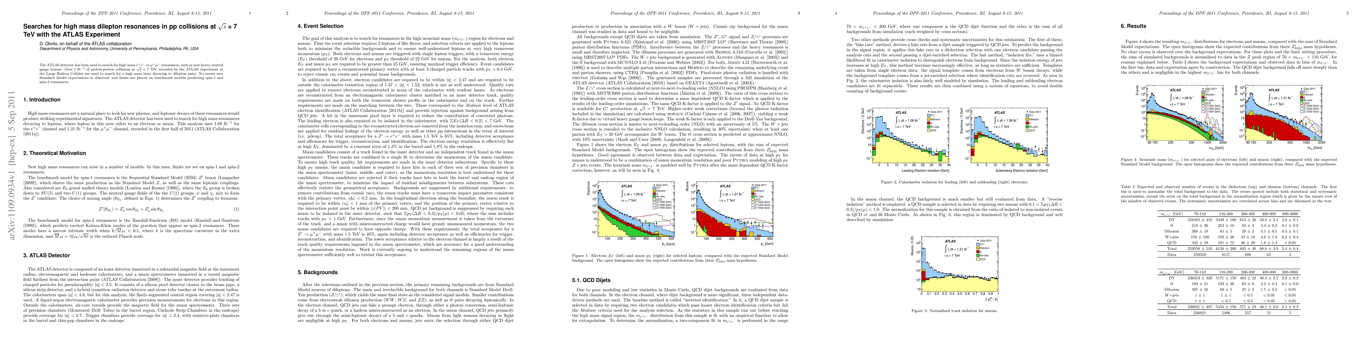 The ATLAS experiment analyzed over 1 fb^{-1} of proton-proton collisions at 7 TeV for high mass dilepton resonances, finding no evidence of new particles beyond the Standard Model. Limits are set on potential spin-1 and spin-2 resonances.