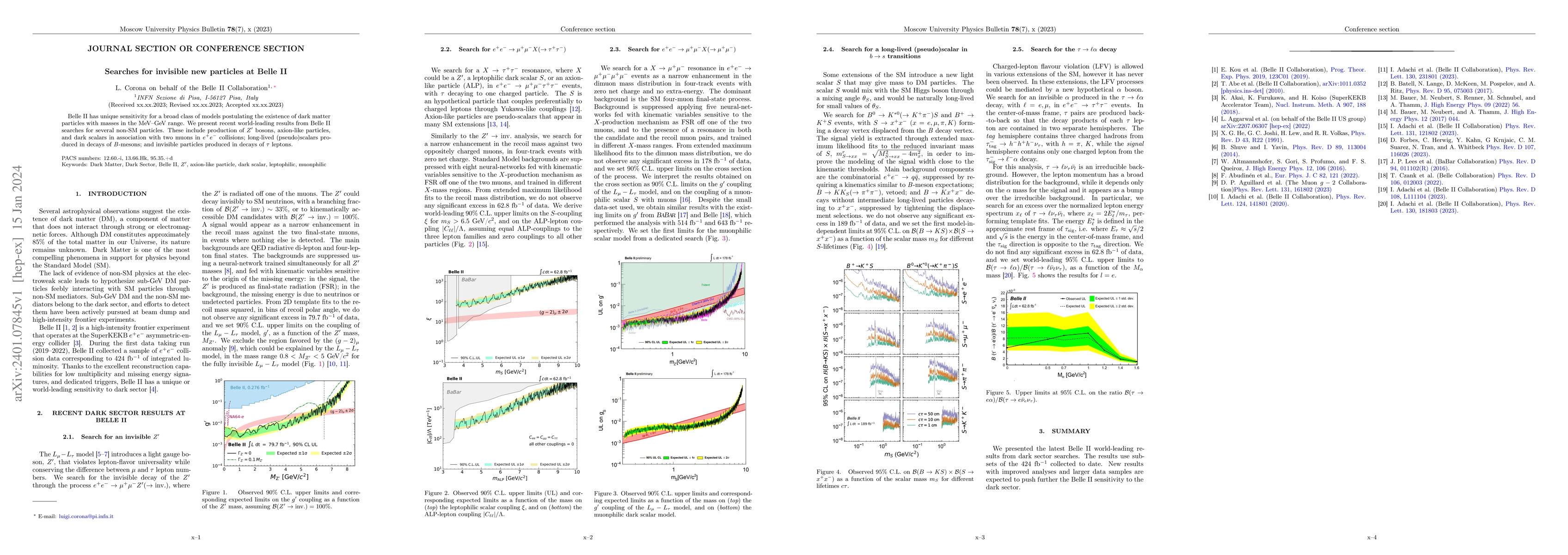 The Belle II experiment reports leading results in searches for invisible new particles, including $Z'$ bosons, axion-like particles, and dark scalars, alongside long-lived scalars from B-meson decays and invisible decays of tau leptons, probing dark matter candidates in the MeV--GeV range.