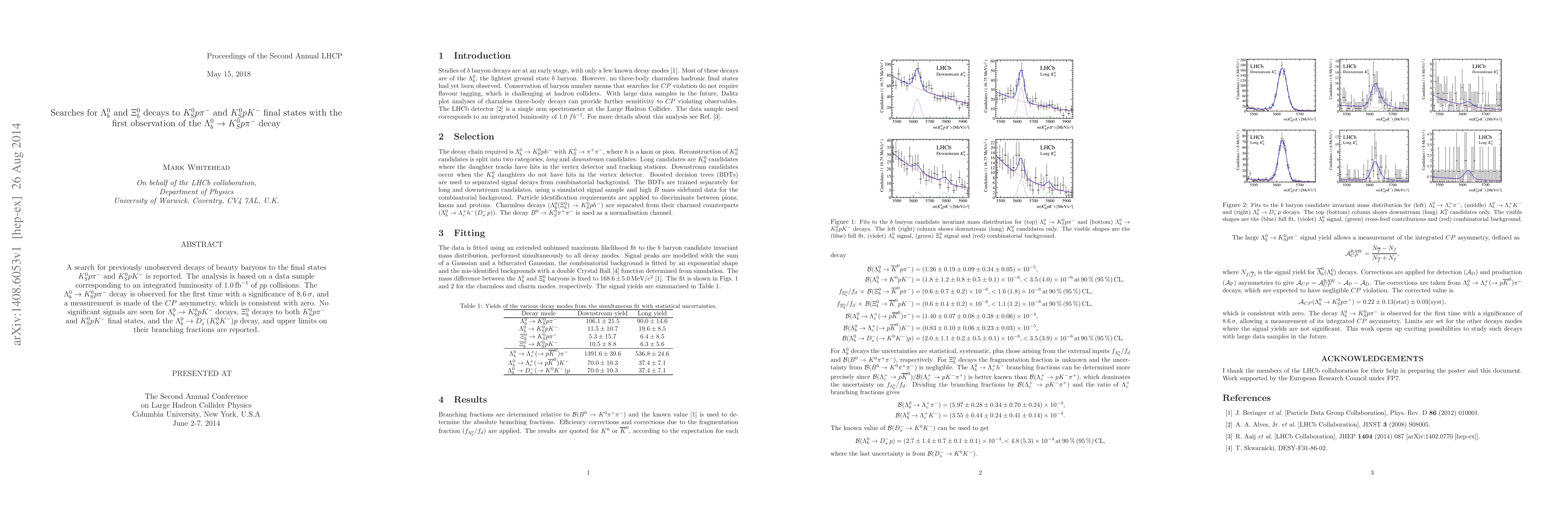 A search for previously unobserved decays of beauty baryons to the final states $K^0_{\mathrm{S}}p\pi^-$ and $K^0_{\mathrm{S}}pK^-$ is reported. The analysis is based on a data sample corresponding to an integrated luminosity of $1.0\,\mathrm{fb}^{-1}$ of $pp$ collisions. The $\Lambda^0_b \rightarrow K^0_{\mathrm{S}}p\pi^-$ decay is observed for the first time with a significance of $8.6\,\sigma$, and a measurement is made of the $CP$ asymmetry, which is consistent with zero. No significant signals are seen for $\Lambda^0_b \rightarrow K^0_{\mathrm{S}}pK^-$ decays, $\Xi^0_b$ decays to both $K^0_{\mathrm{S}}p\pi^-$ and $K^0_{\mathrm{S}}pK^-$ final states, and the $\Lambda^0_b \rightarrow D^-_s (K^0_{\mathrm{S}}K^-)p$ decay, and upper limits on their branching fractions are reported.