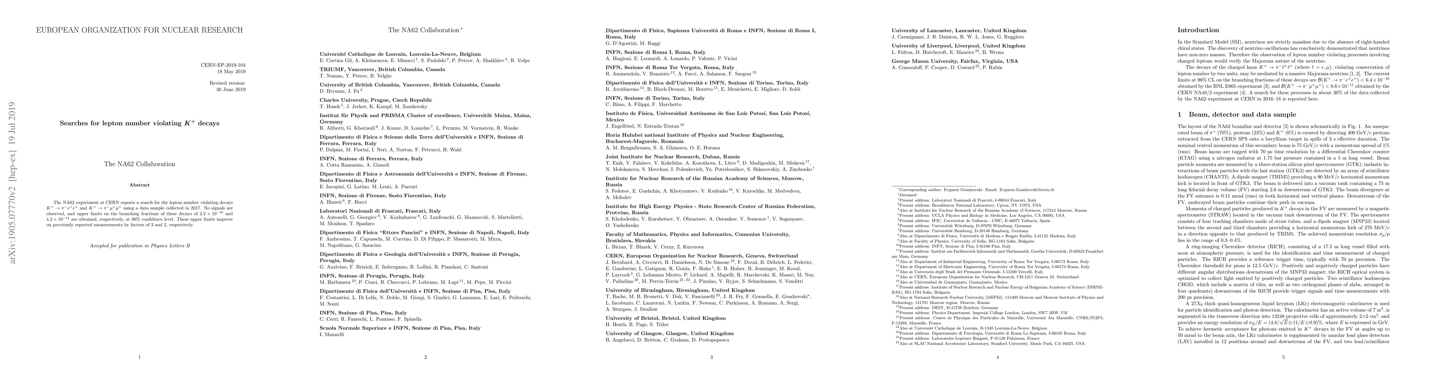 The NA62 experiment at CERN reports a search for the lepton number violating decays $K^+\to\pi^-e^+e^+$ and $K^+\to\pi^-\mu^+\mu^+$ using a data sample collected in 2017. No signals are observed, and upper limits on the branching fractions of these decays of $2.2\times 10^{-10}$ and $4.2\times 10^{-11}$ are obtained, respectively, at 90% confidence level. These upper limits improve on previously reported measurements by factors of 3 and 2, respectively.