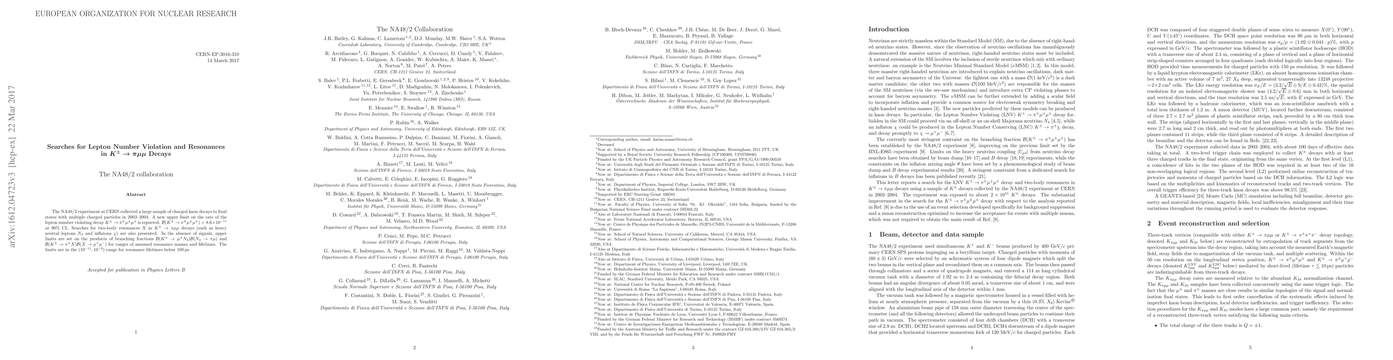 Researchers at CERN's NA48/2 experiment set a new upper limit on lepton number violation in charged kaon decays, finding no evidence for two-body resonances.