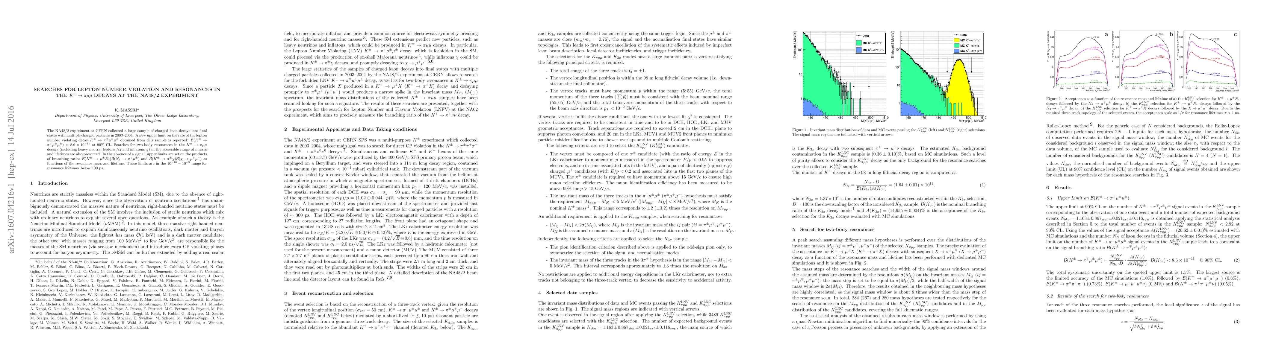The NA48/2 experiment at CERN collected a large sample of charged kaon decays into final states with multiple charged particles in 2003--2004. A new upper limit on the rate of the lepton number violating decay $K^{\pm} \to \pi^{\mp} \mu^{\pm} \mu^{\pm}$ obtained from this sample is reported: $\mathcal{B}(K^{\pm} \to \pi^{\mp} \mu^{\pm} \mu^{\pm})<8.6 \times 10^{-11}$ at 90\% CL. Searches for two-body resonances in the $K^{\pm} \to \pi\mu\mu$ decays (including heavy neutral leptons~$N_4$ and inflatons~$\chi$) in the accessible range of masses and lifetimes are also presented. In the absence of a signal, upper limits are set on the products of branching ratios~$\mathcal{B}(K^{\pm} \to \mu^{\pm} N_{4})\mathcal{B}(N_{4} \to \pi^{\mp}\mu^{\pm})$ and $\mathcal{B}(K^{\pm} \to \pi^{\pm} \chi)\mathcal{B}(\chi \to \mu^{+}\mu^{-})$ as functions of the resonance mass and lifetime. These limits are in the $10^{-10}-10^{-9}$ range for resonance lifetimes below 100~ps.