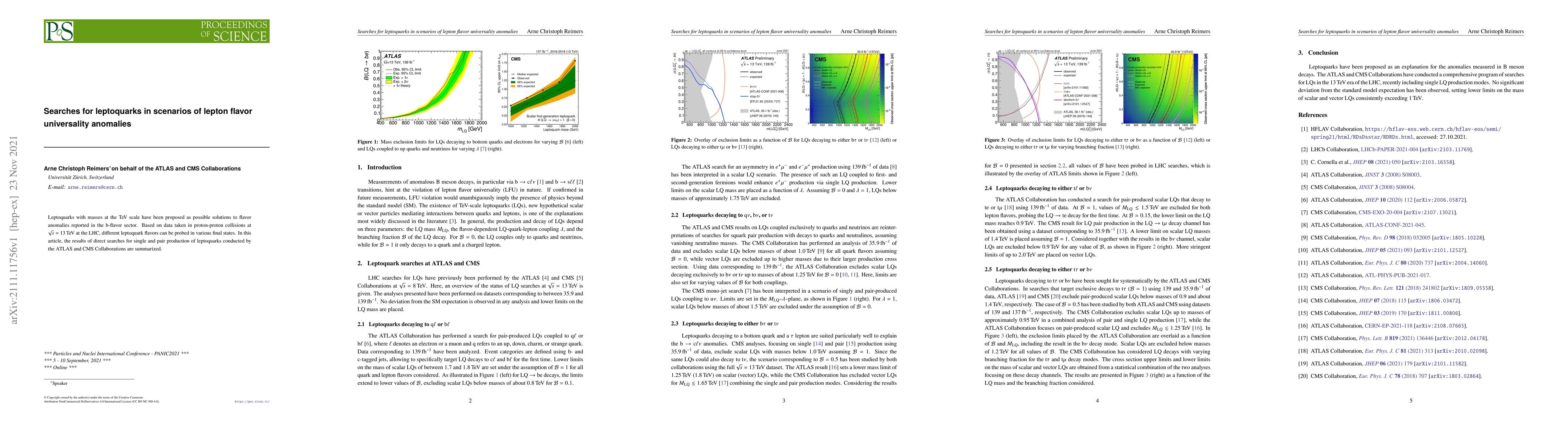 Leptoquarks with masses at the TeV scale have been proposed as possible solutions to flavor anomalies reported in the b-flavor sector. Based on data taken in proton-proton collisions at $\sqrt{s} = 13\,\mathrm{TeV}$ at the LHC, different leptoquark flavors can be probed in various final states. In this article, the results of direct searches for single and pair production of leptoquarks conducted by the ATLAS and CMS Collaborations are summarized.