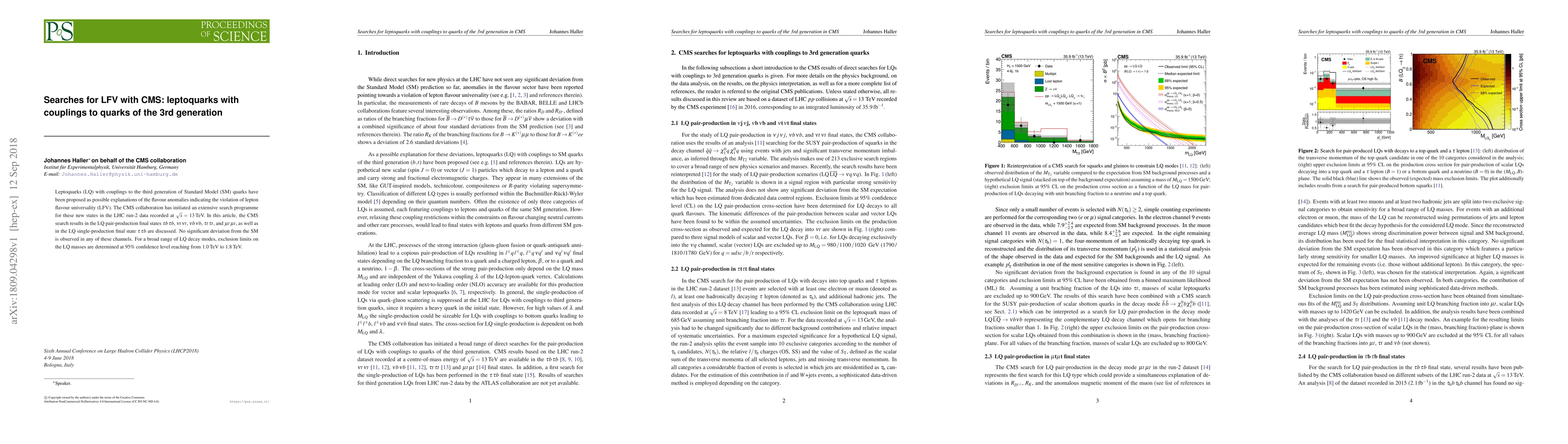 The CMS collaboration searched for leptoquarks with couplings to third-generation quarks, but found no significant deviation from the Standard Model, setting exclusion limits on LQ masses from 1.0 TeV to 1.8 TeV.