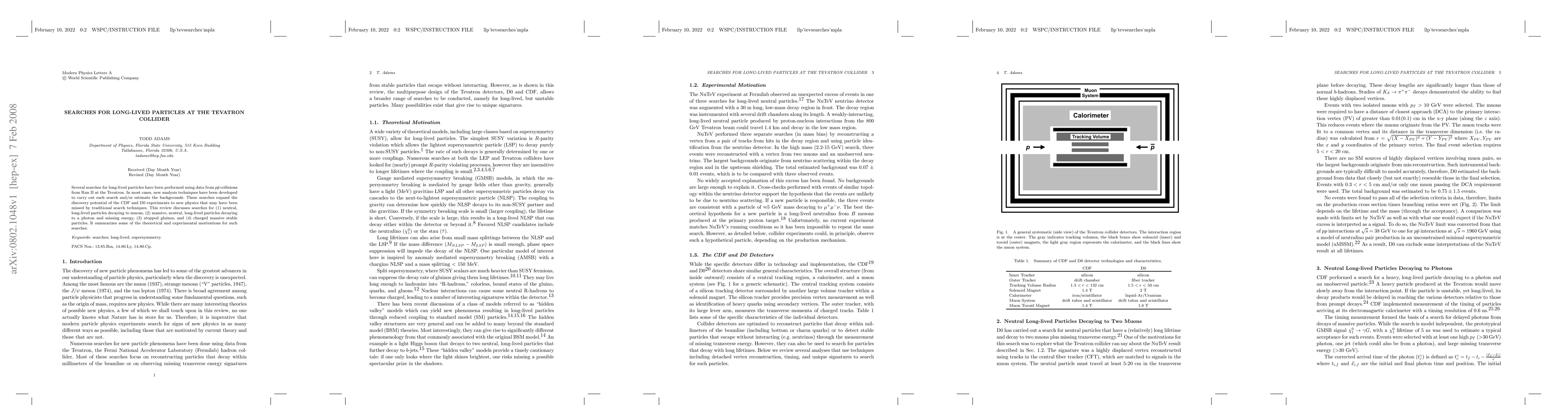 This paper reviews searches for long-lived particles at the Tevatron Collider using data from Run II, focusing on neutral particles decaying to muons, massive particles decaying to photons and missing energy, stopped gluinos, and charged stable particles, employing new analysis techniques to enhance discovery potential.