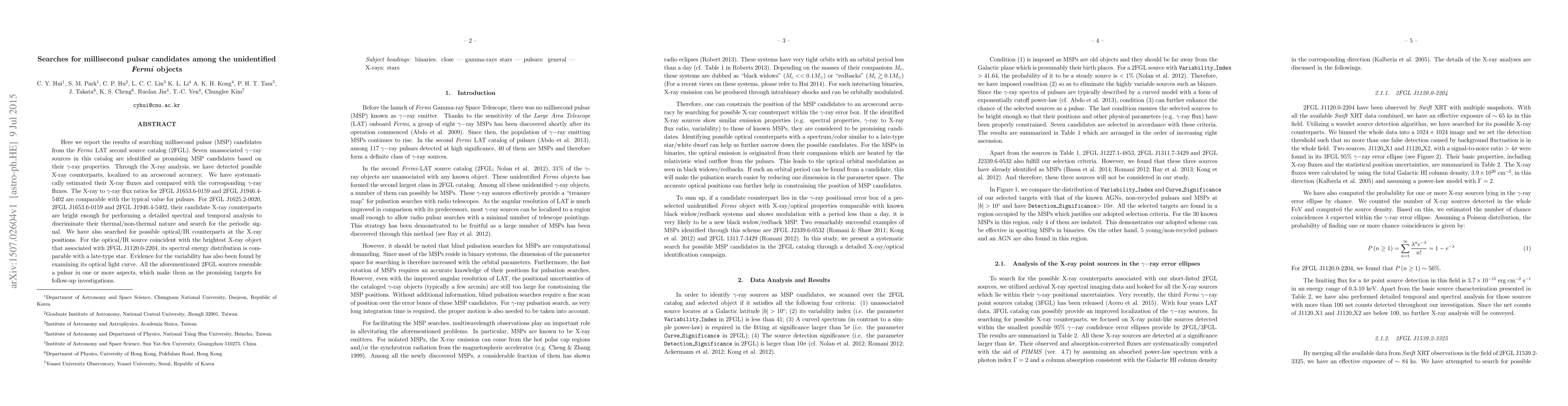 Seven unassociated gamma-ray sources in the Fermi LAT second source catalog were identified as promising millisecond pulsar candidates with possible X-ray counterparts, making them targets for follow-up investigations.