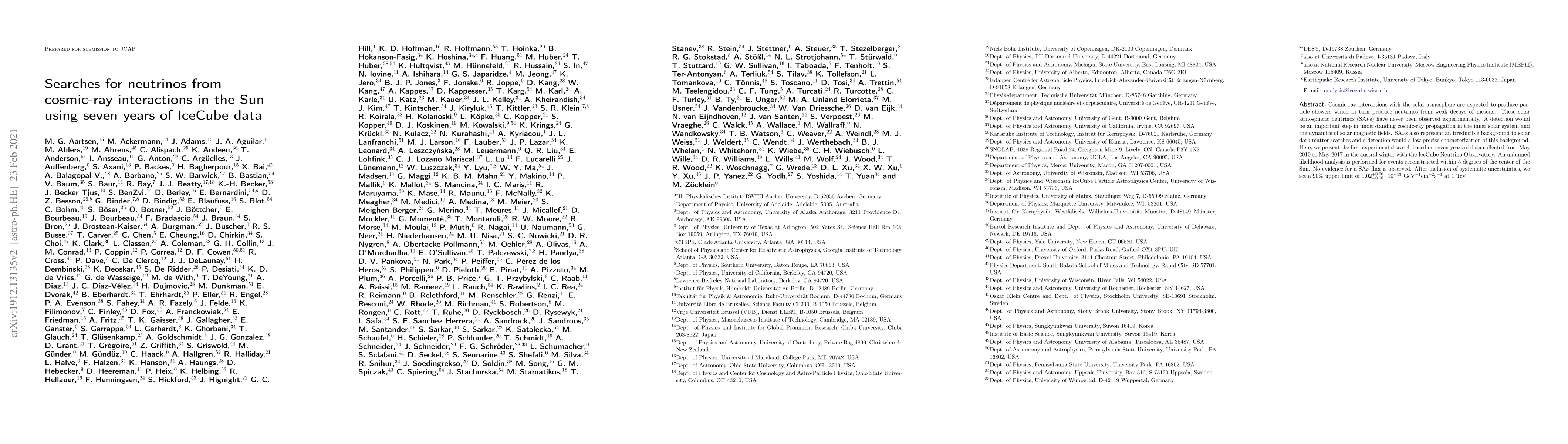 Cosmic-ray interactions with the solar atmosphere are expected to produce particle showers which in turn produce neutrinos from weak decays of mesons. These solar atmospheric neutrinos (SA$\nu$s) have never been observed experimentally. A detection would be an important step in understanding cosmic-ray propagation in the inner solar system and the dynamics of solar magnetic fields. SA$\nu$s also represent an irreducible background to solar dark matter searches and a detection would allow precise characterization of this background. Here, we present the first experimental search based on seven years of data collected from May 2010 to May 2017 in the austral winter with the IceCube Neutrino Observatory. An unbinned likelihood analysis is performed for events reconstructed within 5 degrees of the center of the Sun. No evidence for a SA$\nu$ flux is observed. After inclusion of systematic uncertainties, we set a 90\% upper limit of $1.02^{+0.20}_{-0.18}\cdot10^{-13}$~$\mathrm{GeV^{-1}cm^{-2}s^{-1}}$ at 1 TeV.