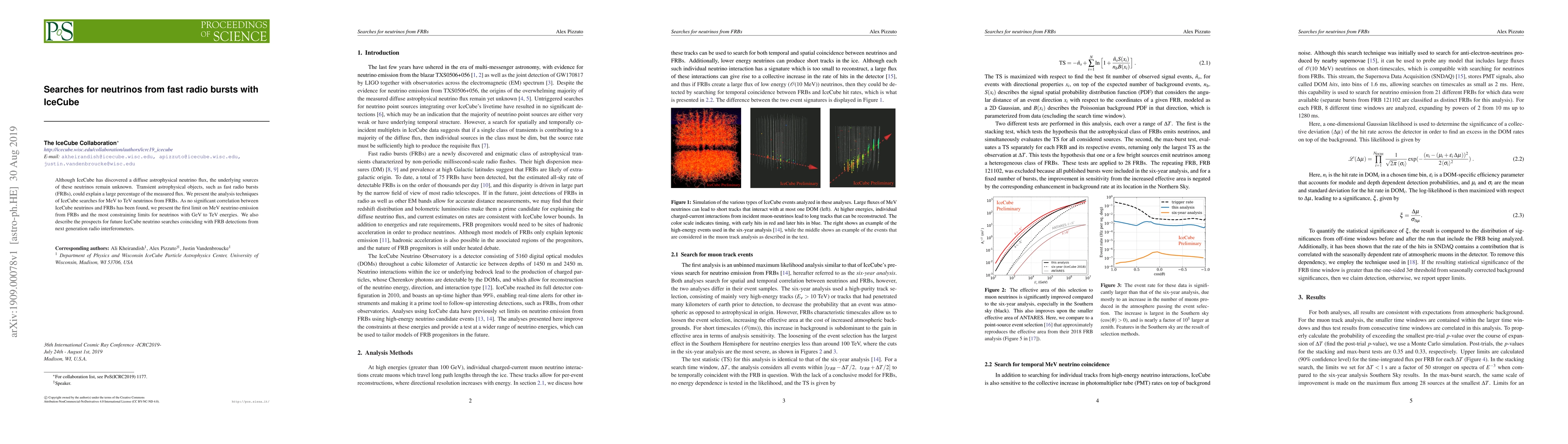 This paper details IceCube's search for MeV to TeV neutrinos from fast radio bursts (FRBs) but finds no significant correlation, setting new limits on MeV neutrino emissions from FRBs and providing the most stringent limits for higher-energy neutrinos. Future searches are anticipated with improved radio interferometers.