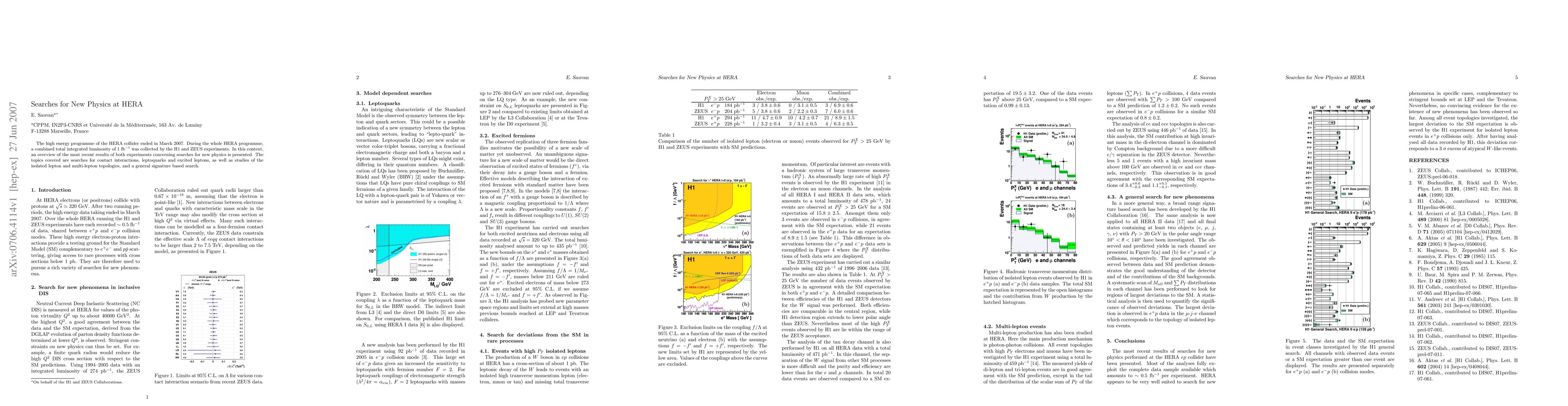 This paper reviews the latest results from the H1 and ZEUS experiments at the HERA collider, focusing on searches for new physics phenomena including contact interactions, leptoquarks, and excited leptons, as well as analyses based on isolated and multi-lepton signatures. The HERA collider's high-energy program concluded in March 2007 with a total integrated luminosity of 1 fb$^{-1}$.