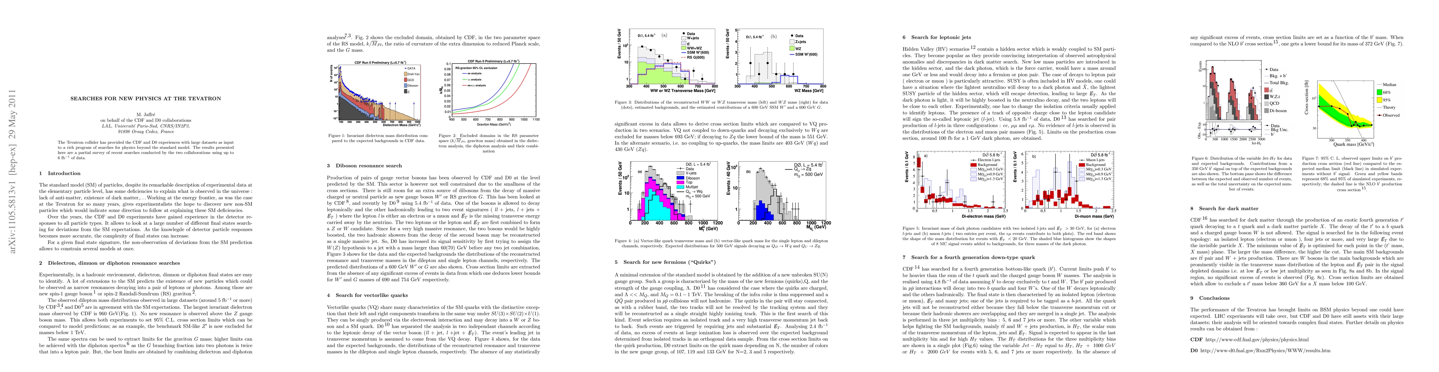 Summary: This paper reviews recent searches for new physics beyond the Standard Model conducted by the CDF and D0 collaborations at the Tevatron collider, utilizing up to 6 /fb of data to explore potential deviations from established theories. No significant discoveries have been reported in the surveyed searches.