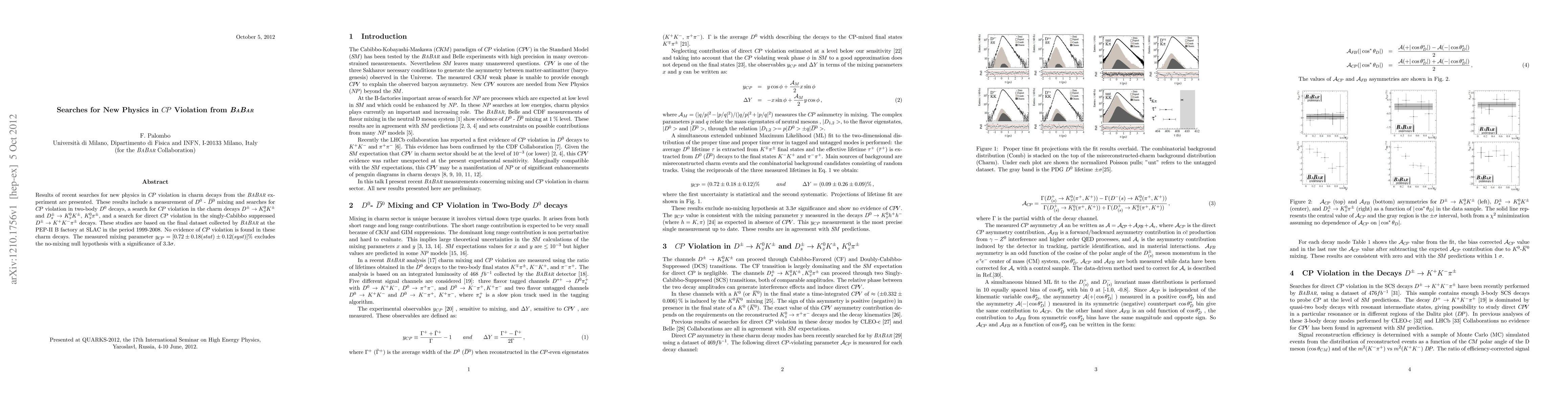This paper reports on searches for new physics in CP violation using charm decays from the BABAR experiment, finding no evidence of CP violation in various decay modes. The study measures $D^0$ - $\bar{D}^0$ mixing with a parameter $y_{CP}$ that excludes no-mixing at 3.3$\sigma$ significance.
