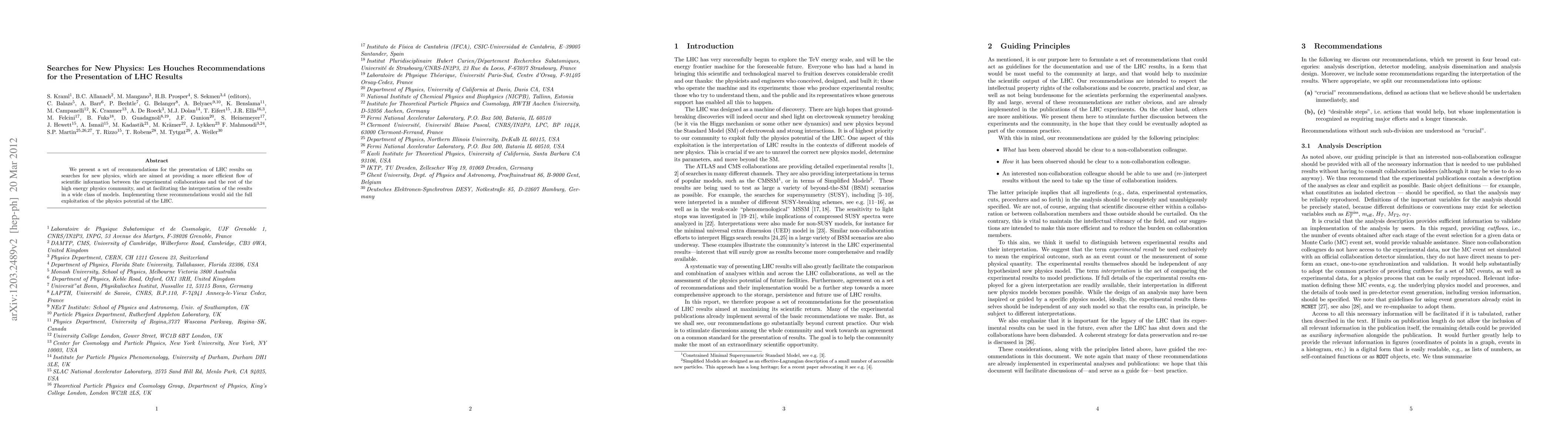We present a set of recommendations for the presentation of LHC results on searches for new physics, which are aimed at providing a more efficient flow of scientific information between the experimental collaborations and the rest of the high energy physics community, and at facilitating the interpretation of the results in a wide class of models. Implementing these recommendations would aid the full exploitation of the physics potential of the LHC.