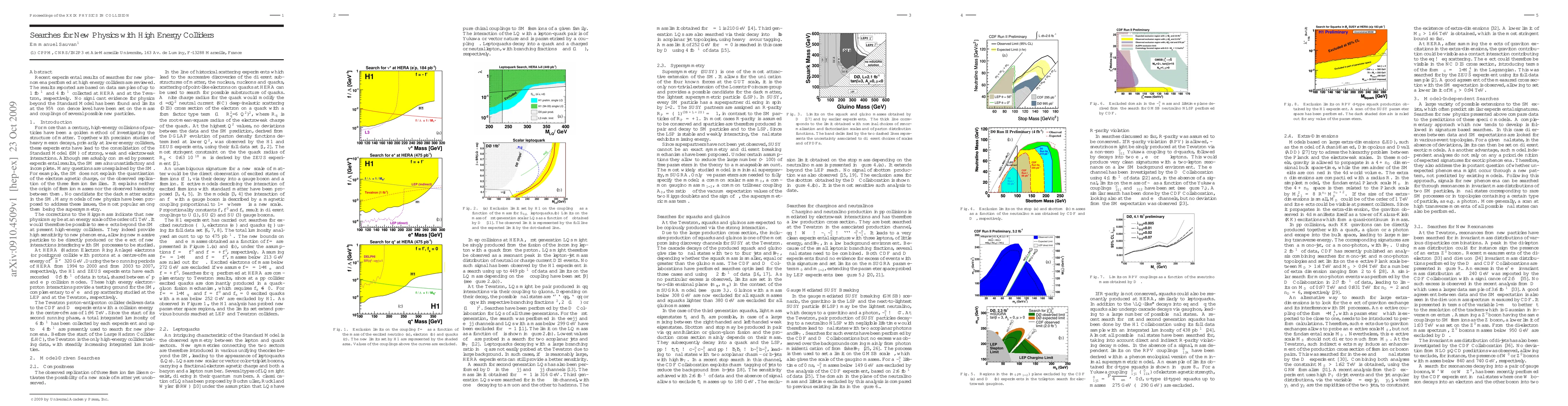This paper reviews experimental results from high-energy colliders, including HERA and the Tevatron, which collected up to 4 fb^-1 of data. Despite extensive searches, no new physics beyond the Standard Model has been found, and limits on potential new particles have been established at the 95% confidence level.