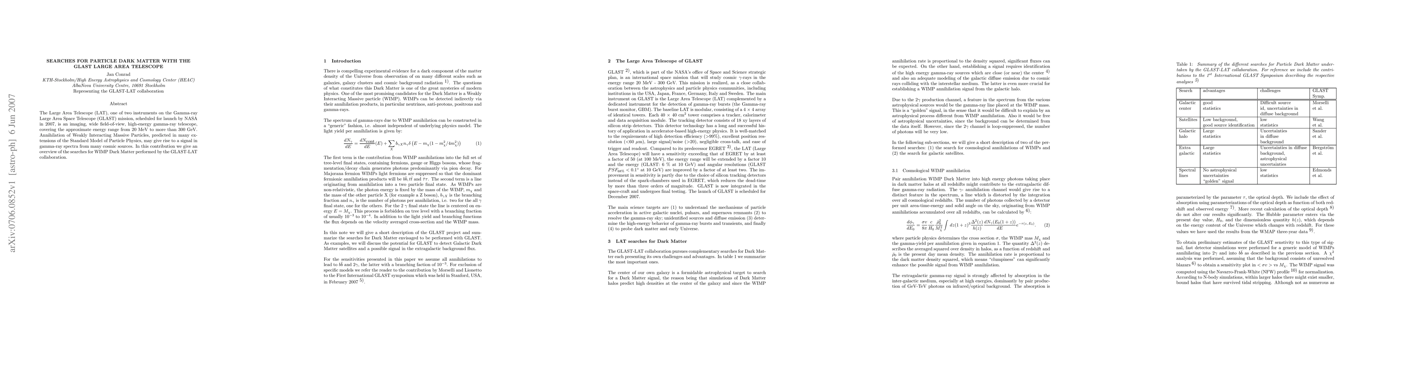 This paper provides an overview of the GLAST Large Area Telescope's (LAT) efforts to detect Weakly Interacting Massive Particles (WIMPs) as potential candidates for particle dark matter through high-energy gamma-ray observations. The LAT, part of NASA's GLAST mission, aims to identify signals from WIMP annihilation across various cosmic sources.