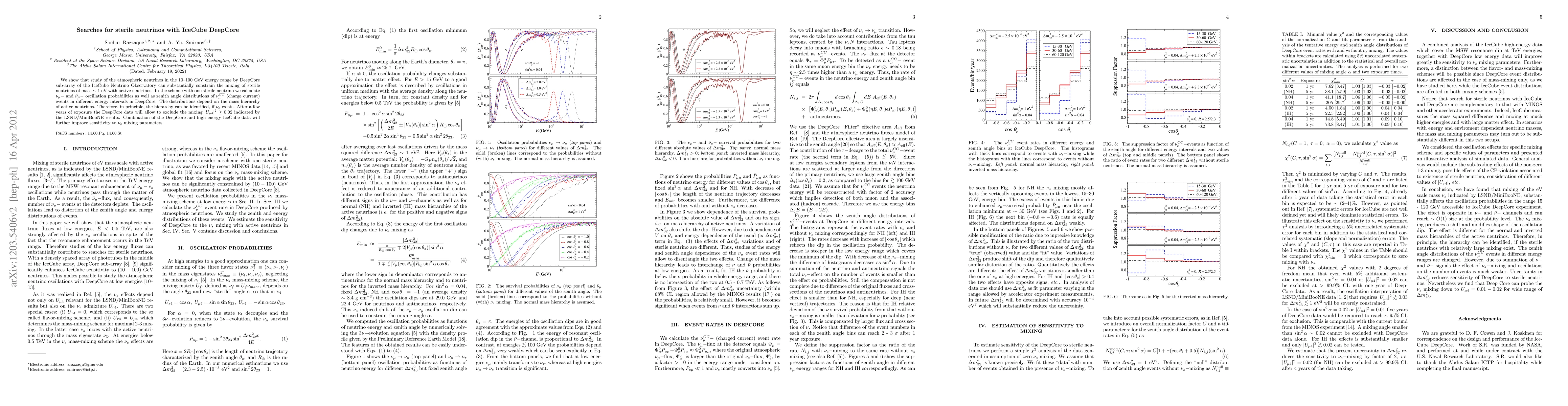 This study uses the IceCube DeepCore sub-array to investigate atmospheric neutrinos in the 10-100 GeV range to constrain the mixing of sterile neutrinos with mass around 1 eV. The research aims to identify the neutrino mass hierarchy and exclude the mixing suggested by LSND/MiniBooNE results after sufficient exposure.