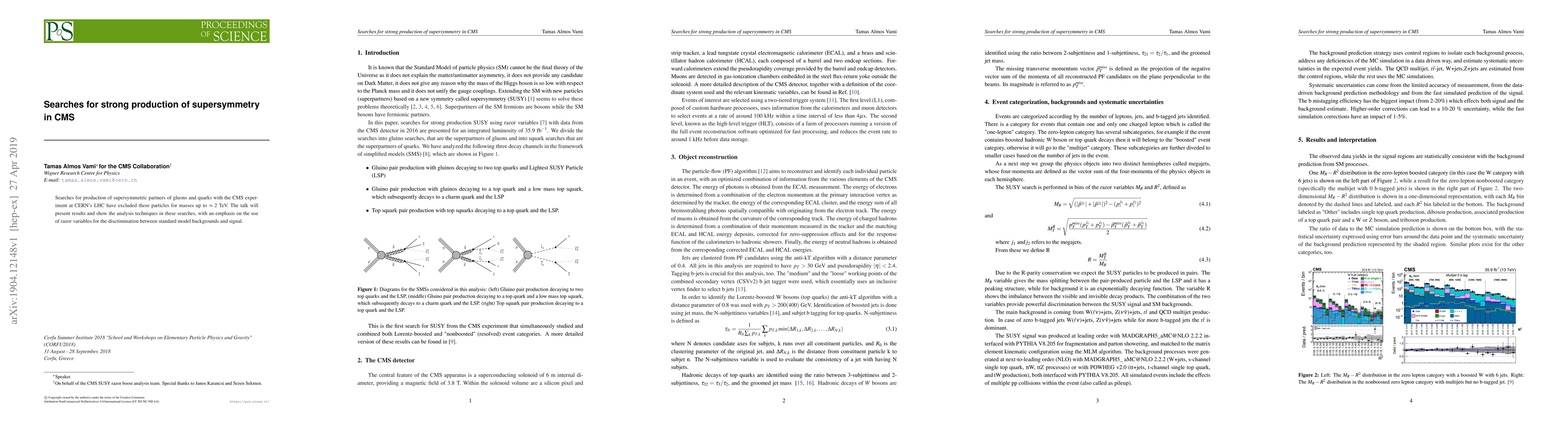 This paper reports on CMS experiments at CERN's LHC that have excluded the existence of supersymmetric partners of gluons and quarks for masses up to 2 TeV, utilizing razor variables to distinguish between standard model backgrounds and potential signals.