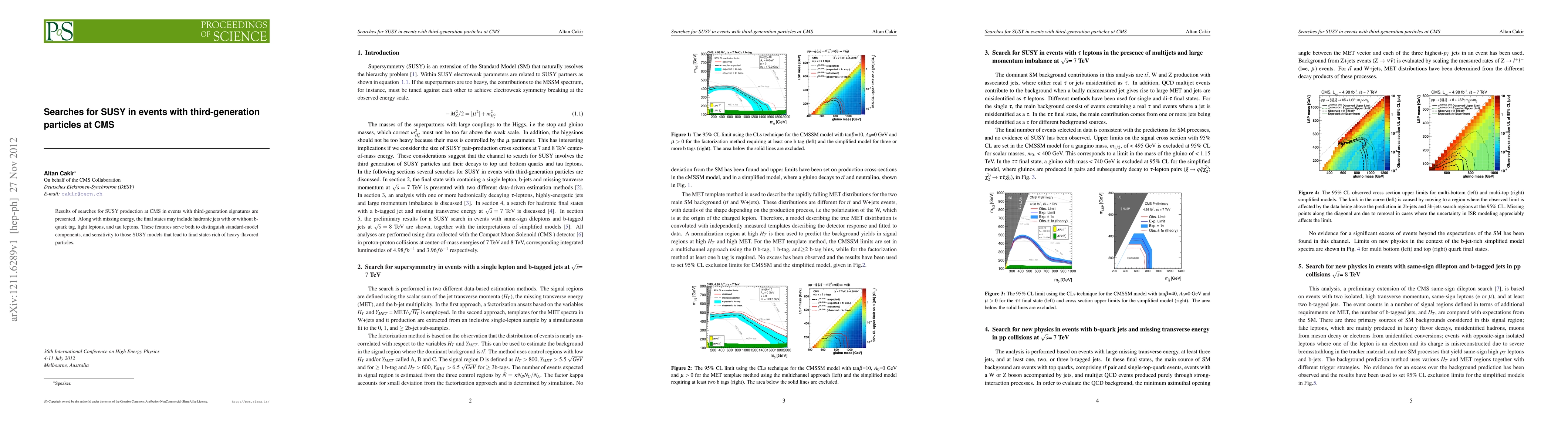 This paper reports CMS results on searches for supersymmetry (SUSY) in events featuring third-generation particles, including heavy-flavored jets and leptons, alongside missing energy, aiming to identify SUSY models with such final states. The study enhances sensitivity to SUSY models rich in heavy-flavored particles.