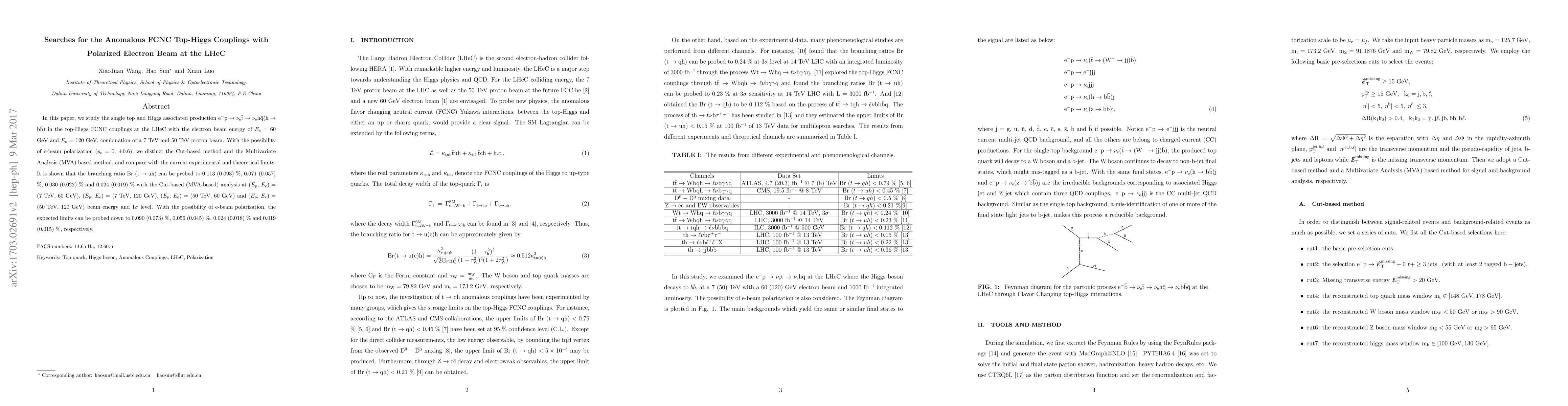This paper investigates the potential for detecting anomalous Flavor Changing Neutral Current (FCNC) top-Higgs couplings at the LHeC using polarized electron beams. It compares the Cut-based and Multivariate Analysis methods to probe the branching ratio of $t\to uh$ down to 0.019% under various beam energies and polarizations.