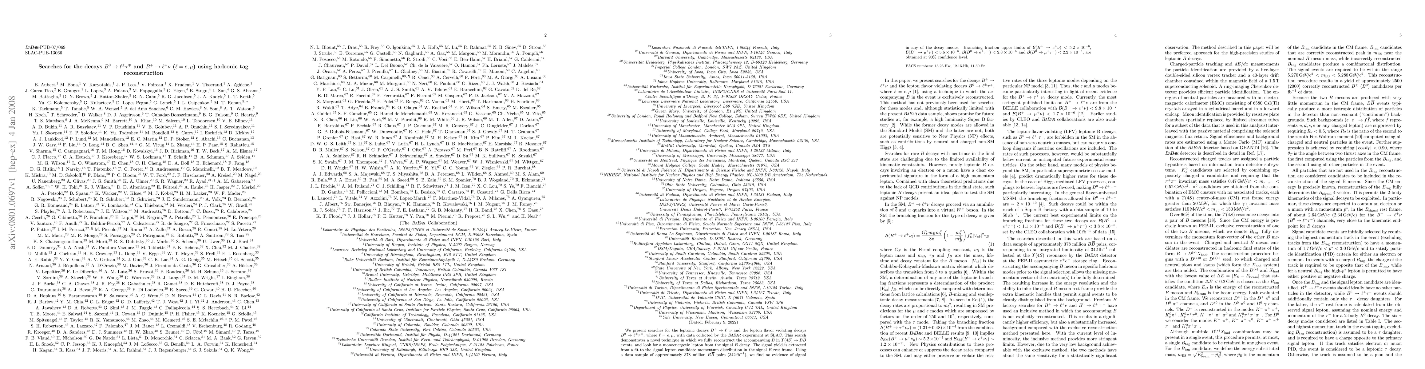 This paper reports searches for rare B meson decays using the BaBar experiment, employing a novel technique for reconstructing the accompanying Bbar meson. No evidence of the decays B+ -> l+ nu and B0 -> l+ tau- was found, resulting in upper limits on their branching fractions at 90% confidence level.