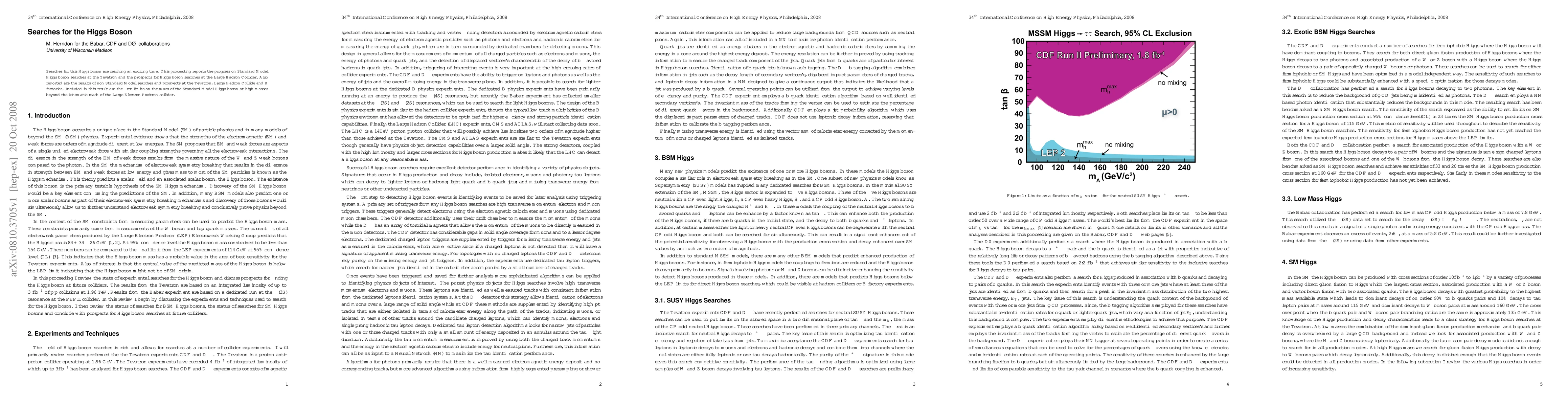 Researchers report progress on detecting the Higgs boson at the Tevatron and Large Hadron Collider, setting limits on its mass beyond current experimental reach.