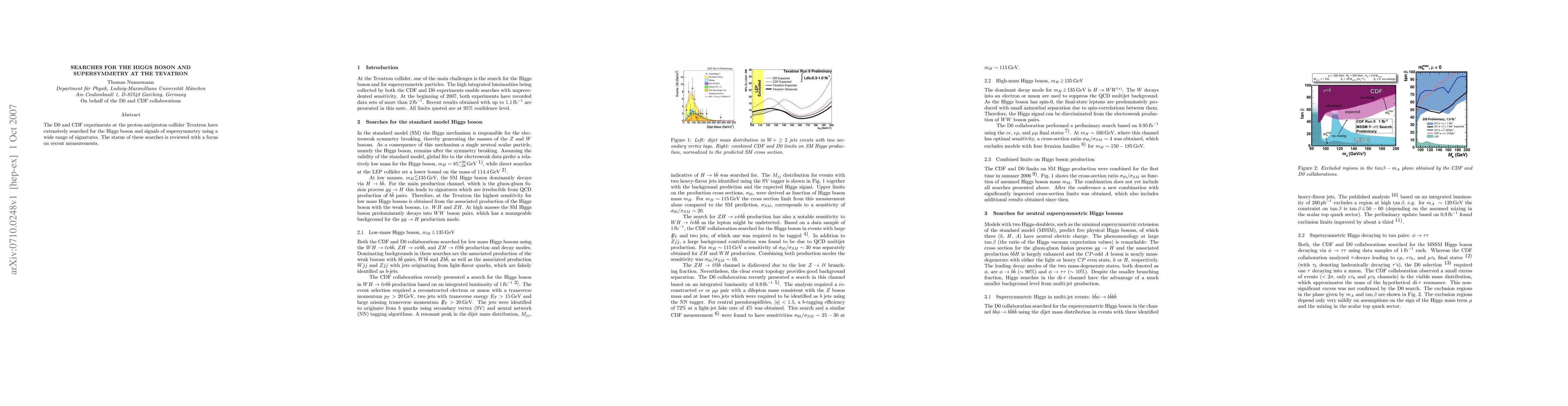 This paper reviews the D0 and CDF experiments' efforts to find the Higgs boson and signs of supersymmetry at the Tevatron collider, highlighting recent advancements in these searches.