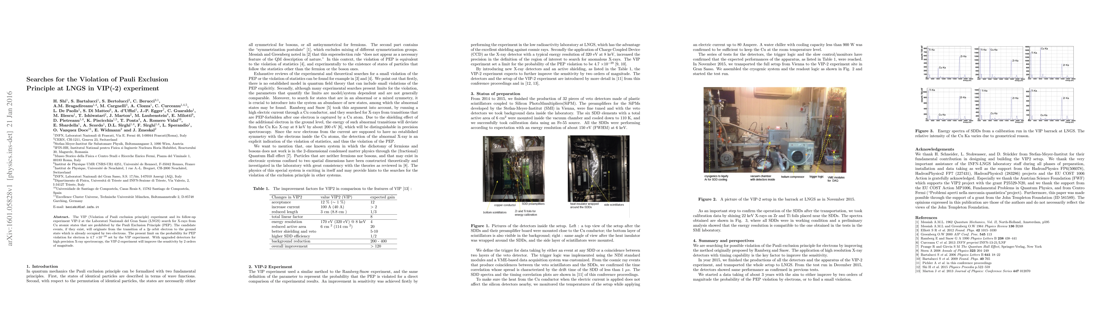 The VIP-2 experiment at LNGS aims to detect X-rays from copper atomic states that violate the Pauli Exclusion Principle, improving sensitivity by two orders of magnitude over the VIP experiment's previous limit of 4.7 × 10^-29 for electron PEP violation.