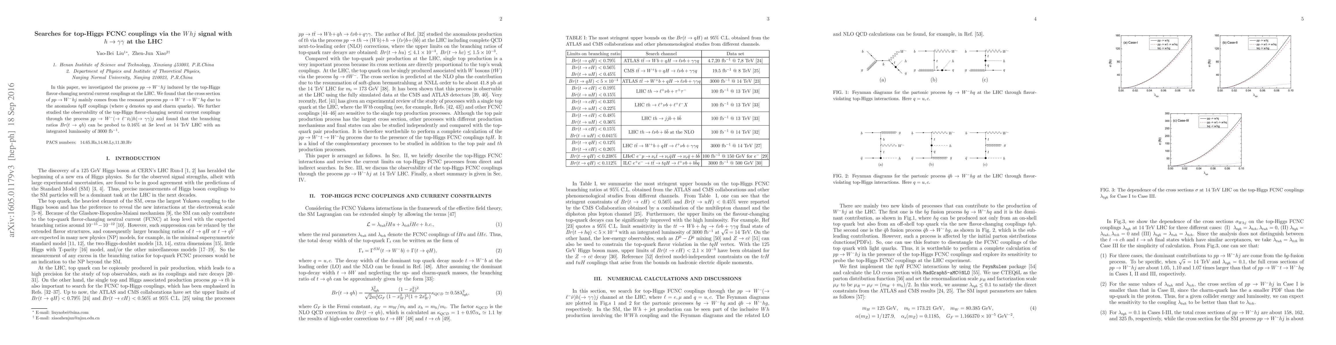 The paper presents a detailed analysis of the pp → W−hj process, including cross-section calculations, background estimations, and significance measurements, to probe top-Higgs FCNC couplings.