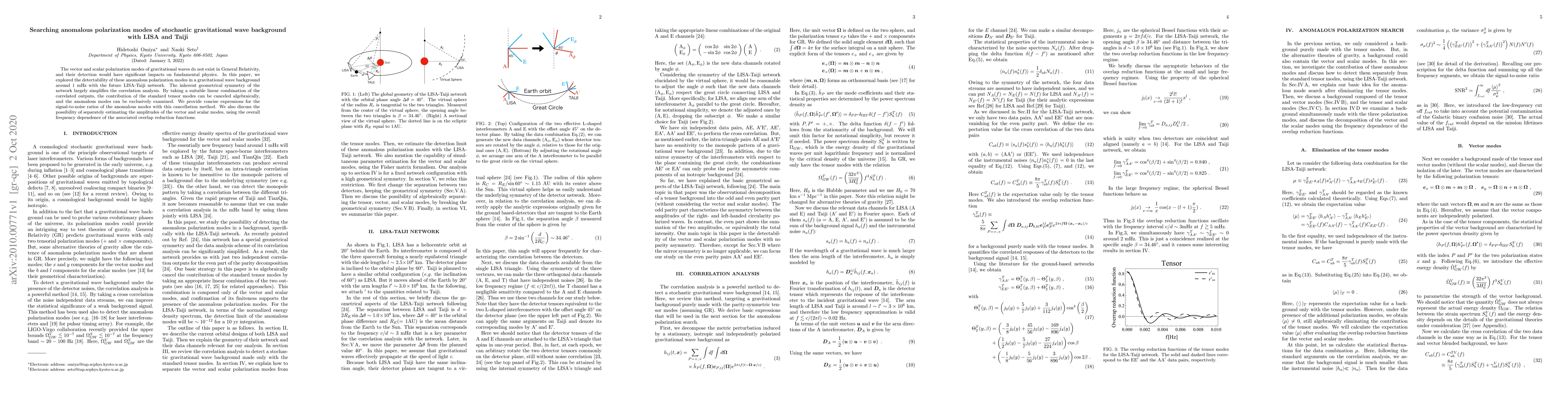 The paper introduces a novel approach to search for anomalous polarization modes by leveraging the inherent geometrical symmetry of the LISA-Taiji network, simplifying the correlation analysis and providing expressions for signal-to-noise ratios.