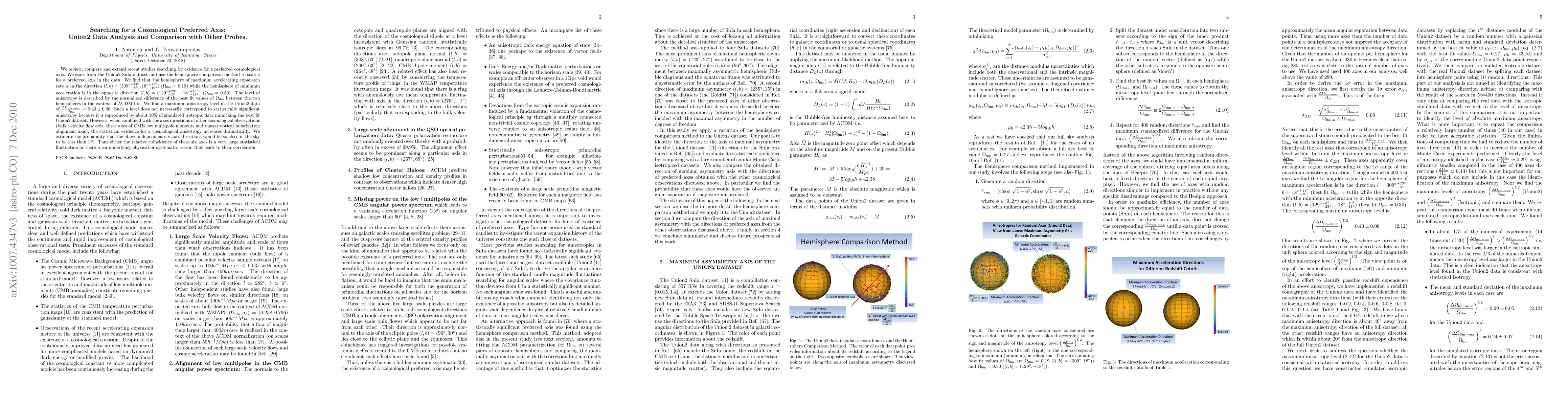 We review, compare and extend recent studies searching for evidence for a preferred cosmological axis. We start from the Union2 SnIa dataset and use the hemisphere comparison method to search for a preferred axis in the data. We find that the hemisphere of maximum accelerating expansion rate is in the direction $(l,b)=({309^\circ}^{+23^\circ}_{-3^\circ}, {18^\circ}^{+11^\circ}_{-10^\circ})$ ($\omm=0.19$) while the hemisphere of minimum acceleration is in the opposite direction $(l,b)=({129^\circ}^{+23^\circ}_{-3^\circ},{-18^\circ}^{+10^\circ}_{-11^\circ})$ ($\omm=0.30$). The level of anisotropy is described by the normalized difference of the best fit values of $\omm$ between the two hemispheres in the context of \lcdm fits. We find a maximum anisotropy level in the Union2 data of $\frac{\Delta \ommax}{\bomm}=0.43\pm 0.06$. Such a level does not necessarily correspond to statistically significant anisotropy because it is reproduced by about $30%$ of simulated isotropic data mimicking the best fit Union2 dataset. However, when combined with the axes directions of other cosmological observations (bulk velocity flow axis, three axes of CMB low multipole moments and quasar optical polarization alignment axis), the statistical evidence for a cosmological anisotropy increases dramatically. We estimate the probability that the above independent six axes directions would be so close in the sky to be less than $1%$. Thus either the relative coincidence of these six axes is a very large statistical fluctuation or there is an underlying physical or systematic reason that leads to their correlation.