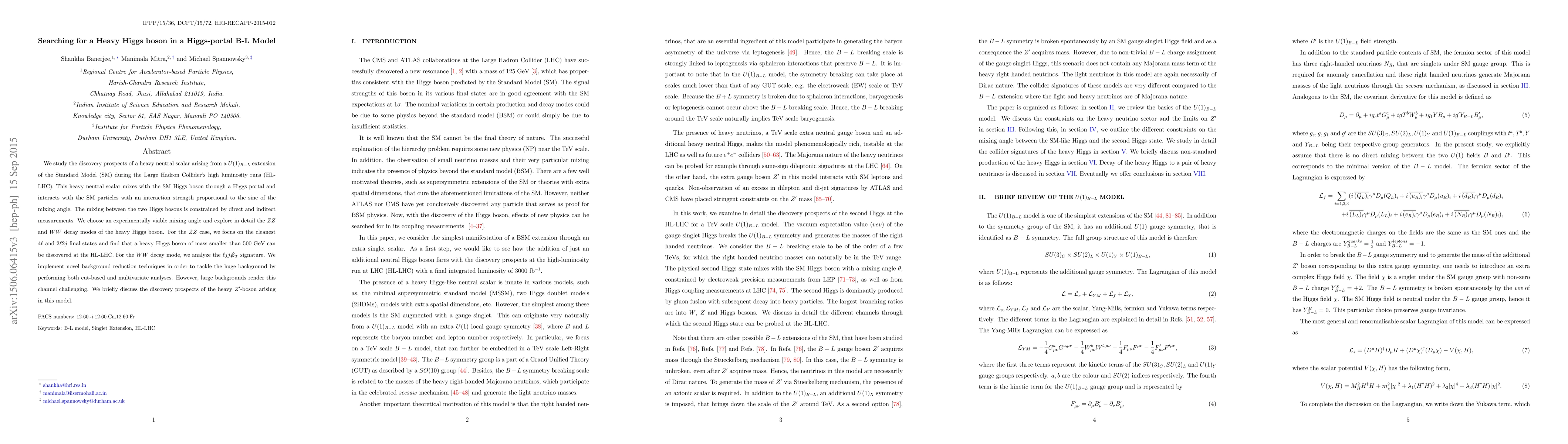 Researchers explore the possibility of discovering a heavy neutral scalar in the Large Hadron Collider's high luminosity runs, which could arise from a new physics model involving a Higgs-portal B-L extension of the Standard Model.
