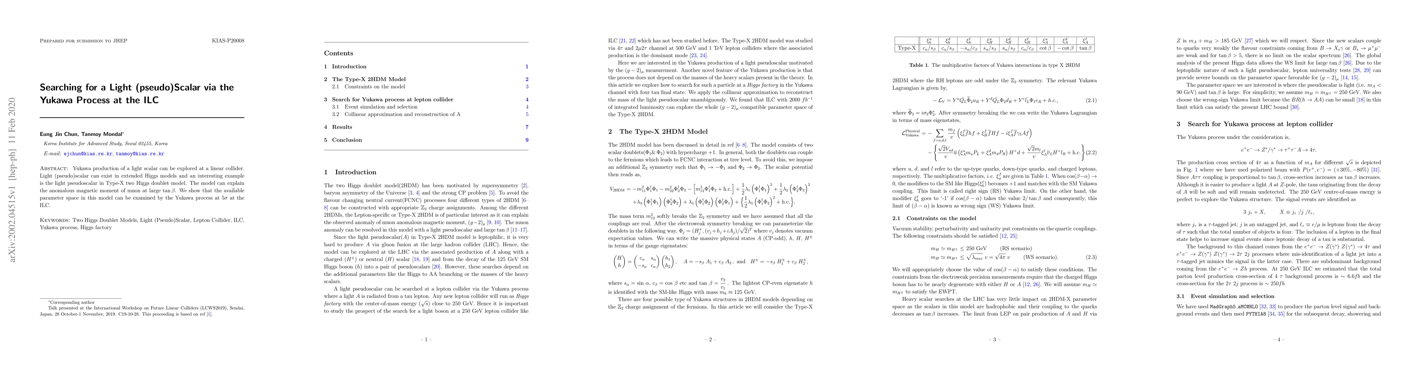 Yukawa production of a light scalar can be explored at a linear collider. Light (pseudo)scalar can exist in extended Higgs models and an interesting example is the light pseudoscalar in Type-X two Higgs doublet model. The model can explain the anomalous magnetic moment of muon at large $\tan \beta$. We show that the available parameter space in this model can be examined by the Yukawa process at 5$\sigma$ at the ILC.