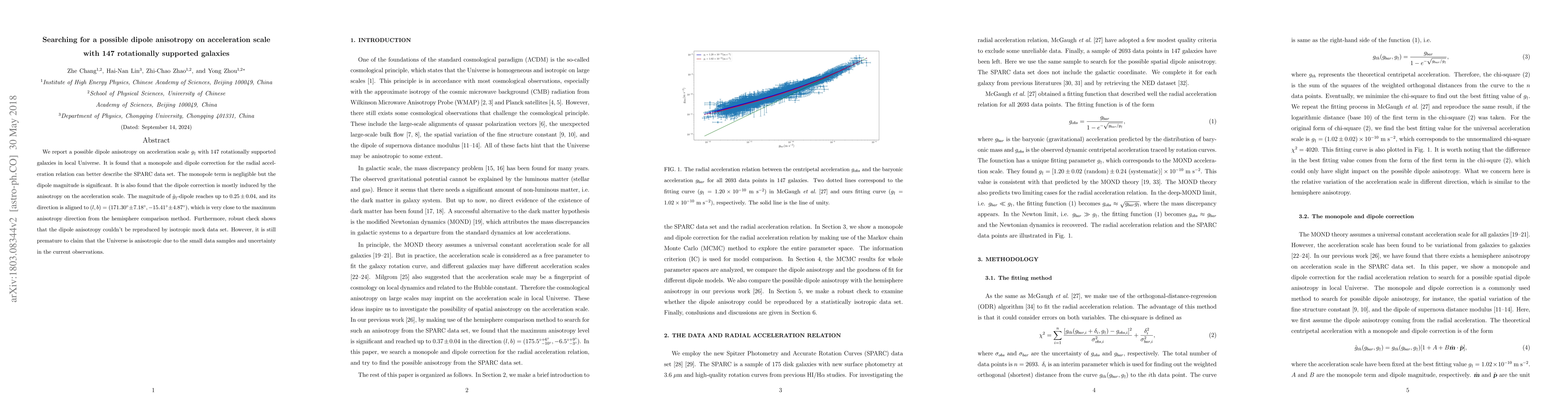 This study identifies a possible dipole anisotropy in the radial acceleration relation of 147 rotationally supported galaxies, suggesting that a dipole correction significantly improves the fit to the SPARC data set. The dipole magnitude is substantial and aligned with a specific direction, but the findings remain tentative due to limited sample size and observational uncertainties.