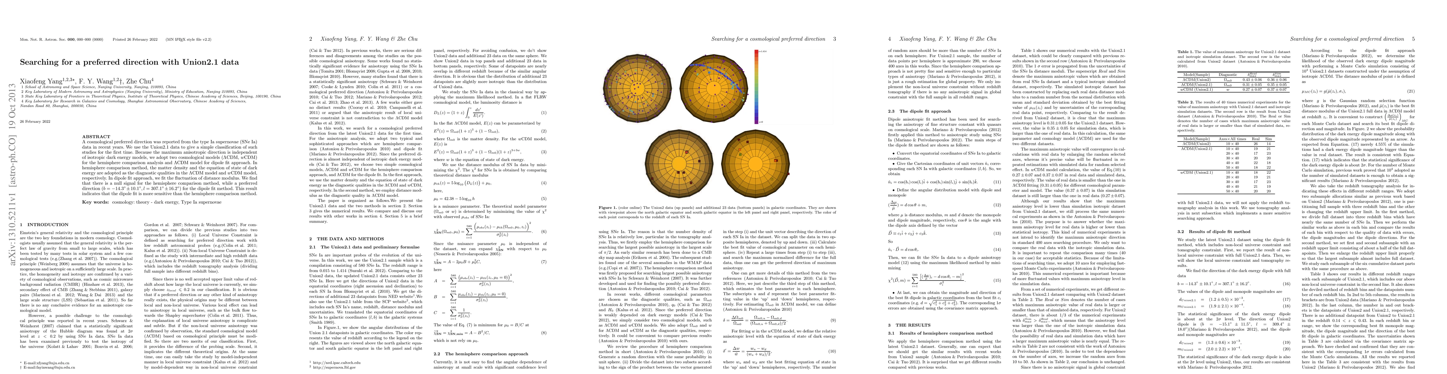 This paper investigates the presence of a cosmological preferred direction using the Union2.1 supernovae data, finding no significant signal in hemisphere comparison analysis but a preferred direction in the dipole fit approach, suggesting the latter is more sensitive.