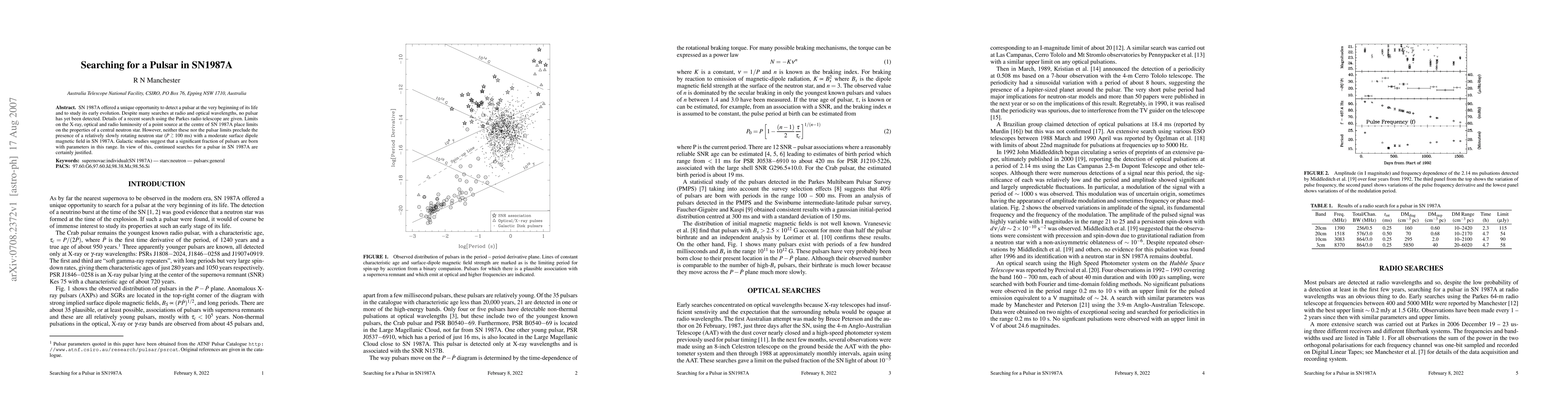 SN 1987A offered a unique opportunity to detect a pulsar at the very beginning of its life and to study its early evolution. Despite many searches at radio and optical wavelengths, no pulsar has yet been detected. Details of a recent search using the Parkes radio telescope are given. Limits on the X-ray, optical and radio luminosity of a point source at the centre of SN 1987A place limits on the properties of a central neutron star. However, neither these nor the pulsar limits preclude the presence of a relatively slowly rotating neutron star (P >~ 100 ms) with a moderate surface dipole magnetic field in SN 1987A. Galactic studies suggest that a significant fraction of pulsars are born with parameters in this range. In view of this, continued searches for a pulsar in SN 1987A are certainly justified.