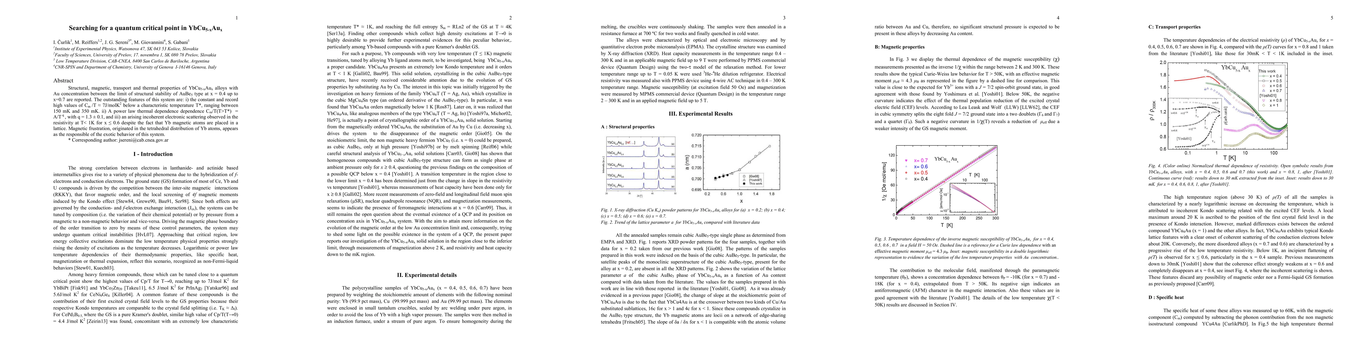Structural, magnetic, transport and thermal properties of YbCu5-xAux alloys with Au concentration between the limit of structural stability of AuBe5 type at x = 0.4 up to x = 0.7 are reported. The outstanding features of this system are: i) the constant and record high values of Cm /T 7J/molK^2 below a characteristic temperature T*, ranging between 150 mK and 350 mK. ii) A power law thermal dependence dependence Cm/T(T>T*)=A/T^q, with q = 1.3 +/- 0.1, and iii) an arising incoherent electronic scattering observed in the resistivity at T < 1K for x < 0.6 despite the fact that Yb magnetic atoms are placed in a lattice. Magnetic frustration, originated in the tetrahedral distribution of Yb atoms, appears as the responsible of the exotic behavior of this system.