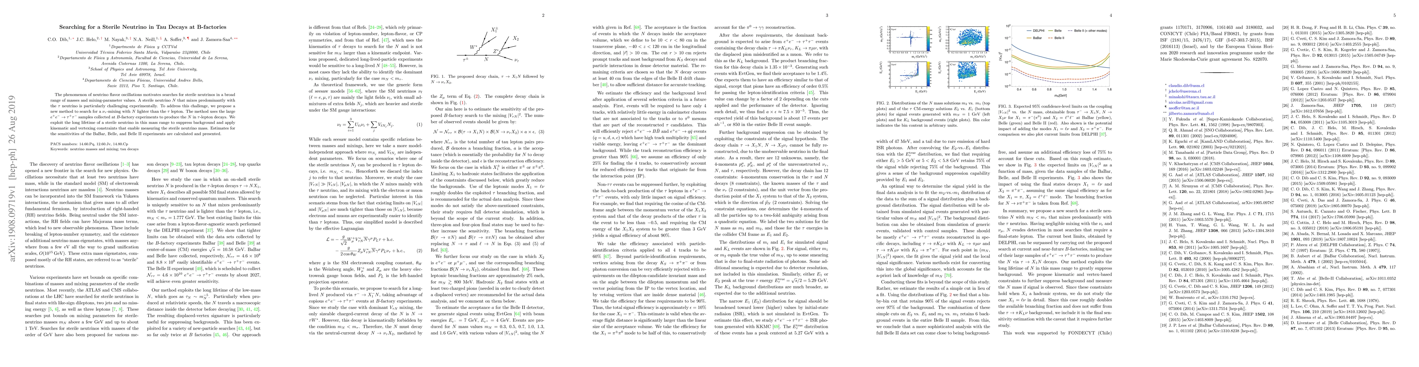 The phenomenon of neutrino flavor oscillations motivates searches for sterile neutrinos in a broad range of masses and mixing-parameter values. A sterile neutrino $N$ that mixes predominantly with the $\tau$ neutrino is particularly challenging experimentally. To address this challenge, we propose a new method to search for a $\nu_\tau$-mixing with $N$ lighter than the $\tau$ lepton. The method uses the large $e^+e^-\to\tau^+\tau^-$ samples collected at $B$-factory experiments to produce the $N$ in $\tau$-lepton decays. We exploit the long lifetime of a sterile neutrino in this mass range to suppress background and apply kinematic and vertexing constraints that enable measuring the sterile neutrino mass. Estimates for the sensitivities of the BaBar, Belle, and Belle~II experiments are calculated and presented.