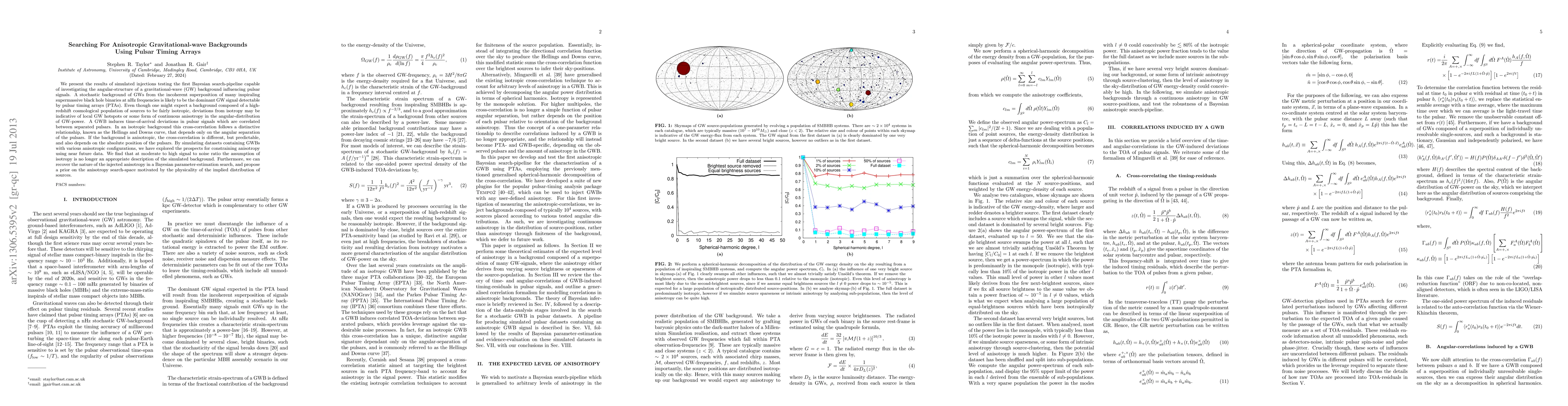 Researchers used pulsar timing arrays to search for anisotropic gravitational wave backgrounds, finding that isotropy is no longer a good assumption at moderate signal-to-noise ratios; they also developed a method to constrain and recover anisotropy in the background.