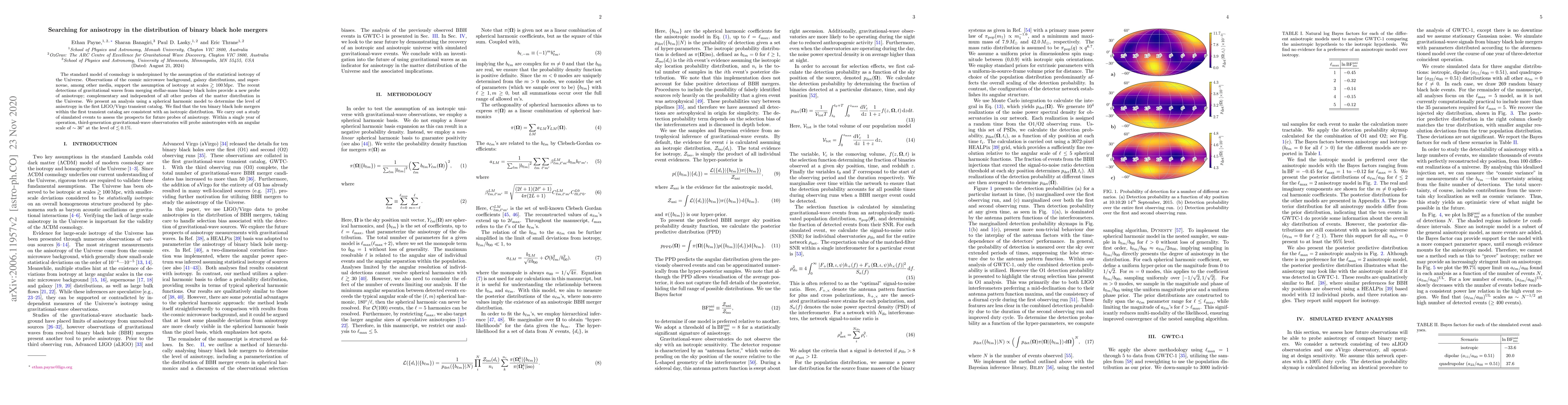 The standard model of cosmology is underpinned by the assumption of the statistical isotropy of the Universe. Observations of the cosmic microwave background, galaxy distributions, and supernovae, among other media, support the assumption of isotropy at scales $\gtrsim 100$\,Mpc. The recent detections of gravitational waves from merging stellar-mass binary black holes provide a new probe of anisotropy; complementary and independent of all other probes of the matter distribution in the Universe. We present an analysis using a spherical harmonic model to determine the level of anisotropy in the first LIGO/Virgo transient catalog. We find that the ten binary black hole mergers within the first transient catalog are consistent with an isotropic distribution. We carry out a study of simulated events to assess the prospects for future probes of anisotropy. Within a single year of operation, third-generation gravitational-wave observatories will probe anisotropies with an angular scale of $\sim36^\circ$ at the level of $\lesssim0.1\%$.