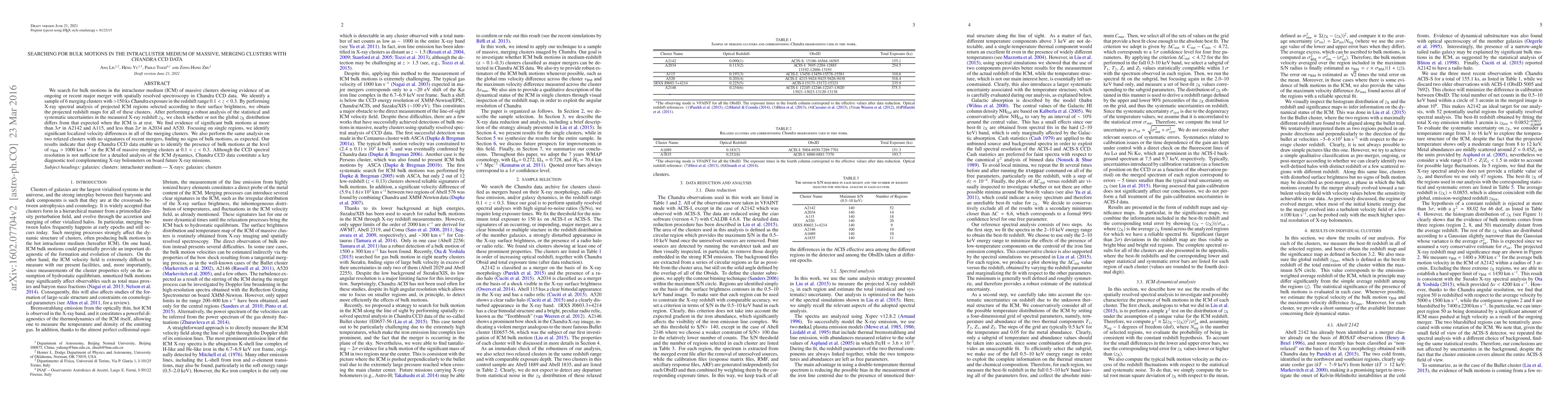 recent mergers, finding no signs of bulk motions, as expected. Our results