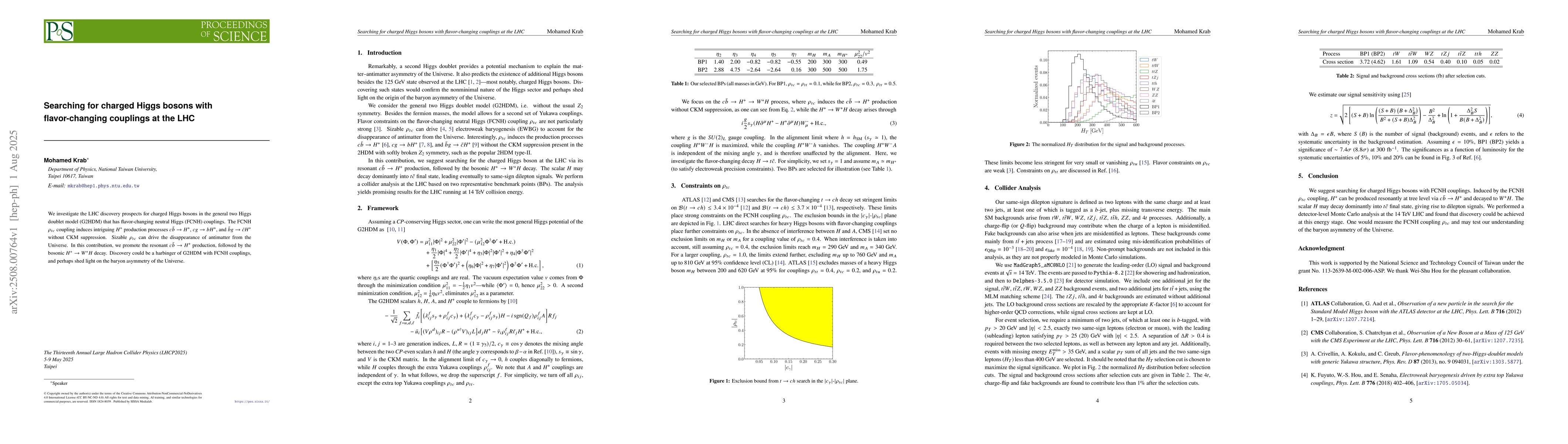 The paper presents a detailed analysis of charged Higgs boson production and decay in the G2HDM with FCNH couplings, including a detector-level simulation at the LHC.