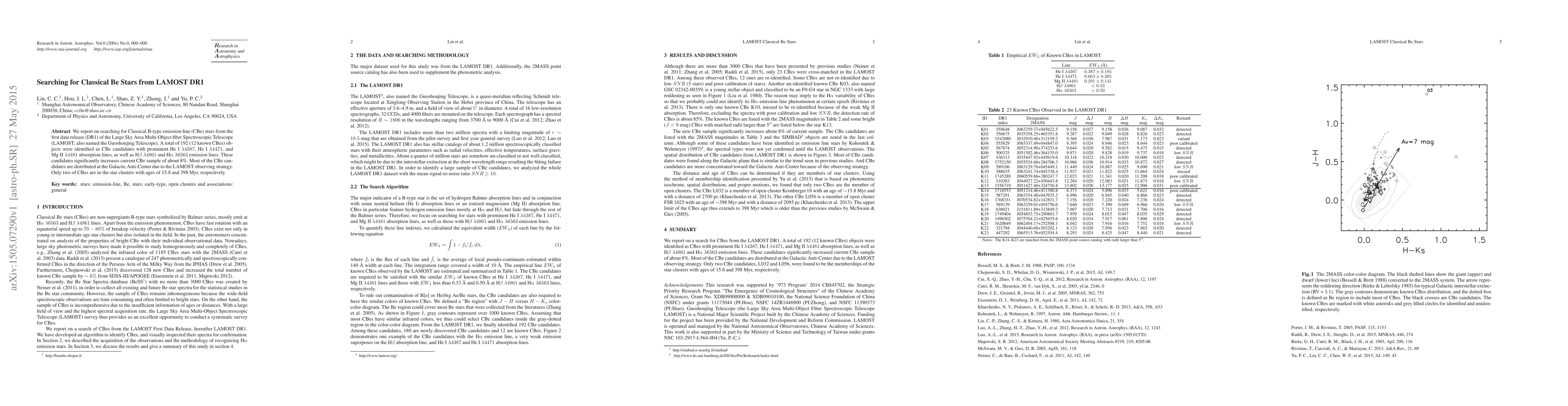 We report on searching for Classical B-type emission-line (CBe) stars from the first data release (DR1) of the Large Sky Area Multi-Object fiber Spectroscopic Telescope (LAMOST; also named the Guoshoujing Telescope). A total of 192 (12 known CBes) objects were identified as CBe candidates with prominent He~I~$\lambda4387$, He~I~$\lambda4471$, and Mg~II~$\lambda4481$ absorption lines, as well as H$\beta$~$\lambda4861$ and H$\alpha$~$\lambda6563$ emission lines. These candidates significantly increases current CBe sample of about 8\%. Most of the CBe candidates are distributed at the Galactic Anti-Center due to the LAMOST observing strategy. Only two of CBes are in the star clusters with ages of 15.8 and 398~Myr, respectively.
